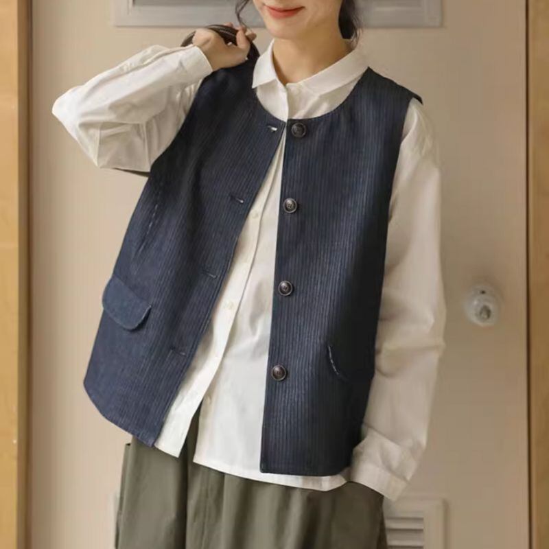 シンプルながらも洗練されたデザインのベストは、着るだけでおしゃれな雰囲気を演出します。オフィスシーンでは、ブラウスやシャツと合わせてきちんと感を演出。休日は、Tシャツやワンピースの上から羽織るだけで、手軽にこなれ感をプラスできます。ワードローブに一つあると便利なアイテムです。