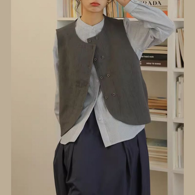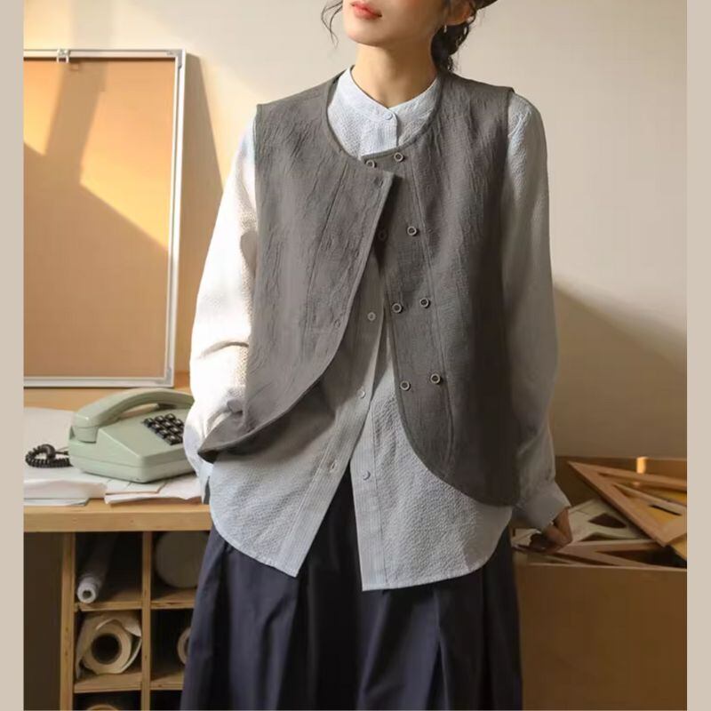 シンプルなデザインながら、個性的なシルエットが魅力のベストです。アシンメトリーな裾のデザインが、着るだけでスタイリッシュな印象に。普段使いはもちろん、オフィスやちょっとしたお出かけにも活躍する万能アイテムです。様々なコーディネートに取り入れやすく、着回し力も抜群です。