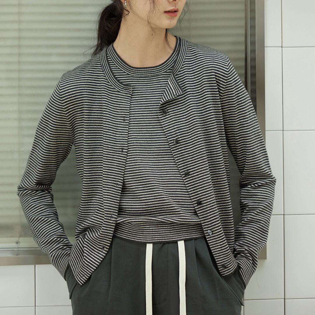 ストライプアンサンブルニット M0198