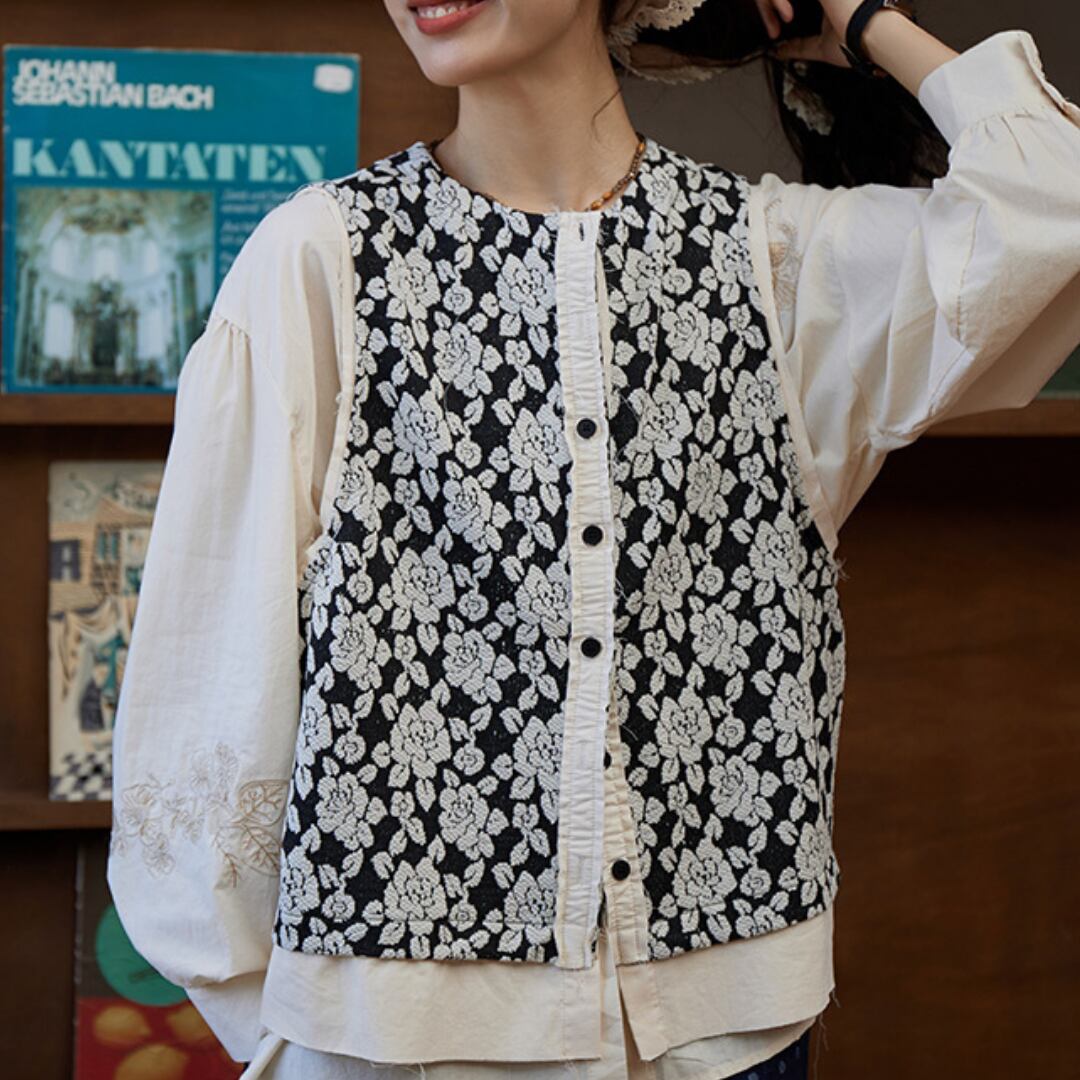 フラワージャガードベスト M0185