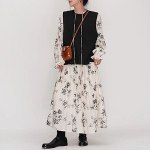 ローウエストボタニカル柄ロングドレス M0168