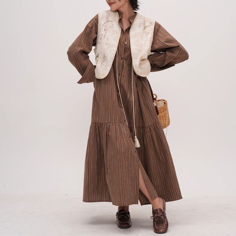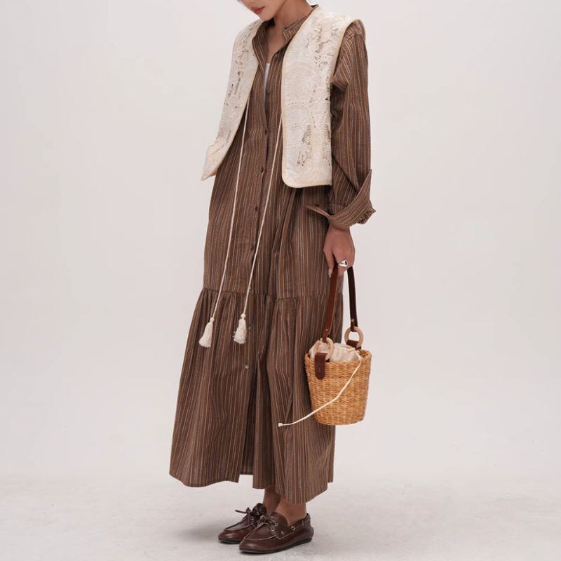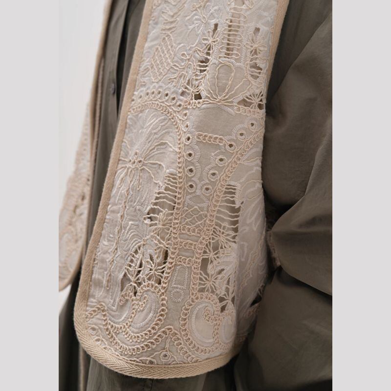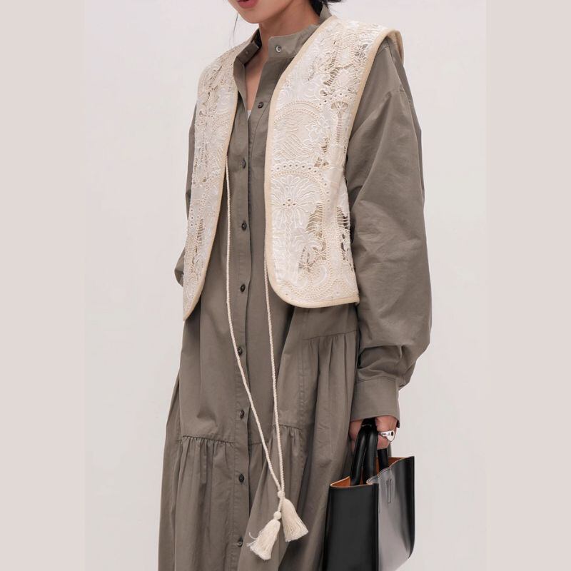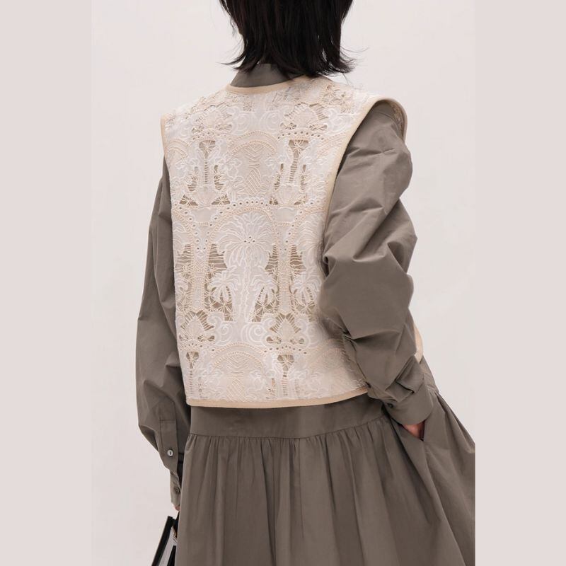繊細なレースのVネックベストは、どんなスタイルにも簡単に華やかさをプラスできます。シンプルなワンピースやブラウスの上から羽織るだけで、洗練された大人の女性らしさを演出。