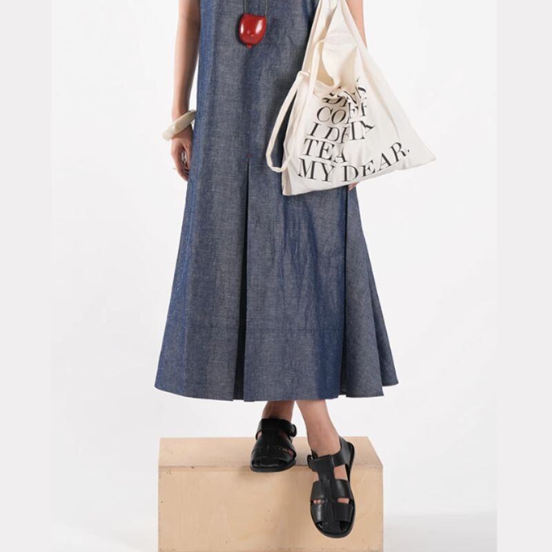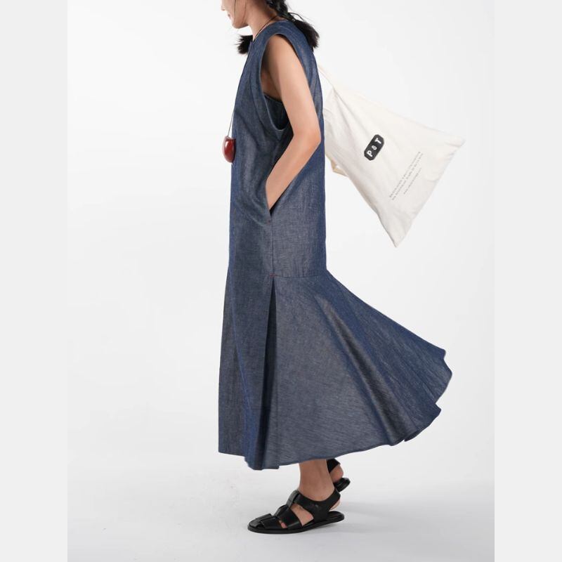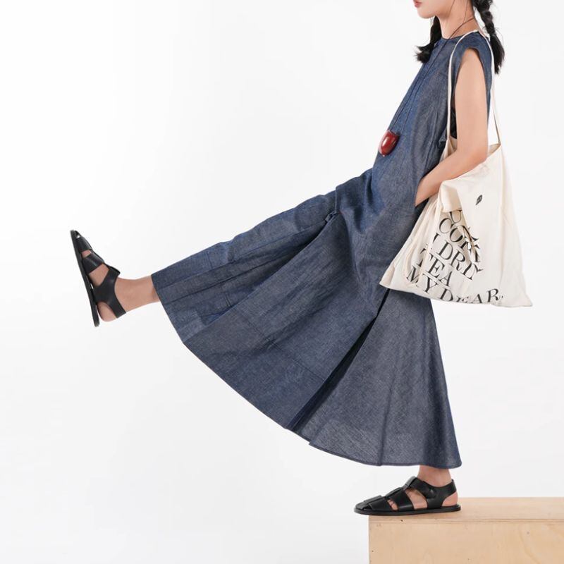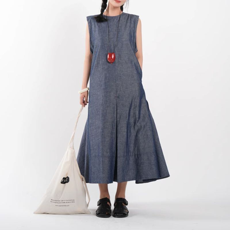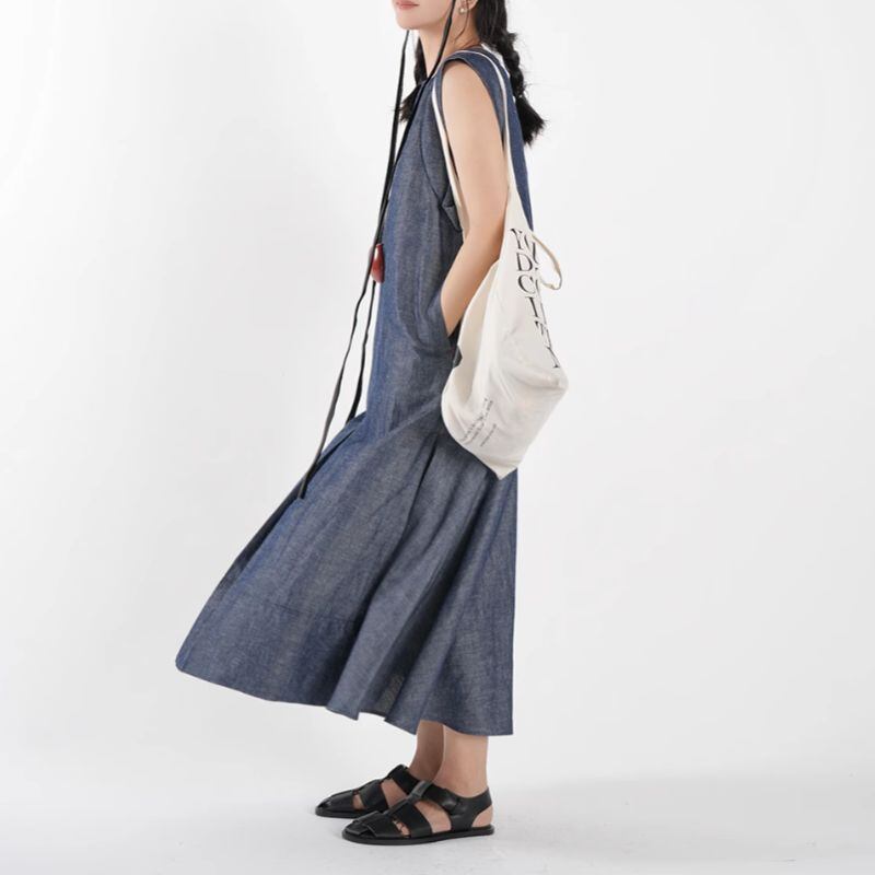 Aラインのシルエットが美しく、着心地の良いノースリーブロングワンピースです。夏の暑い日でも涼しく快適にお過ごしいただけます。
