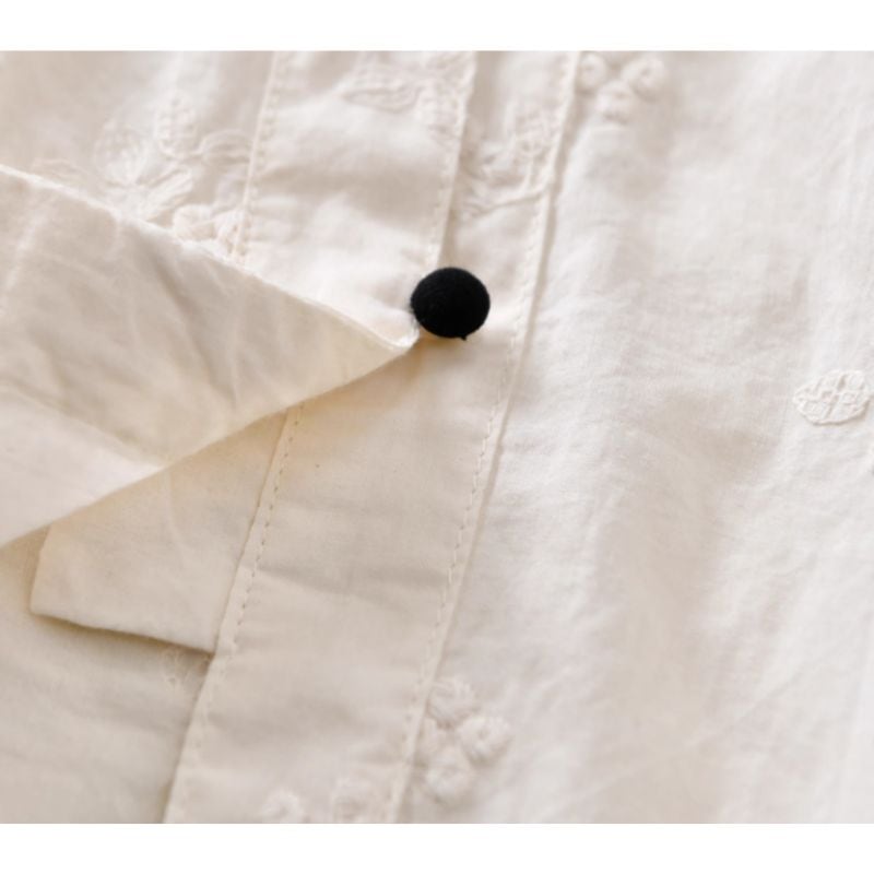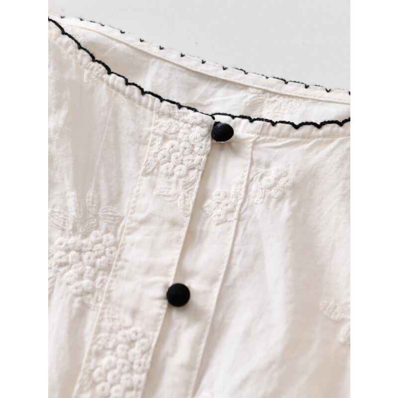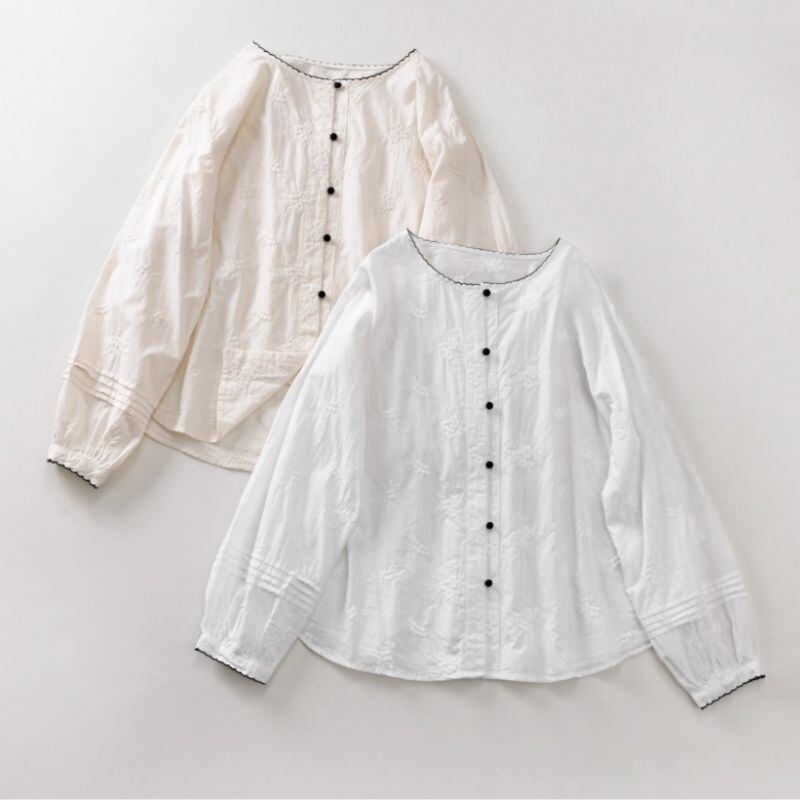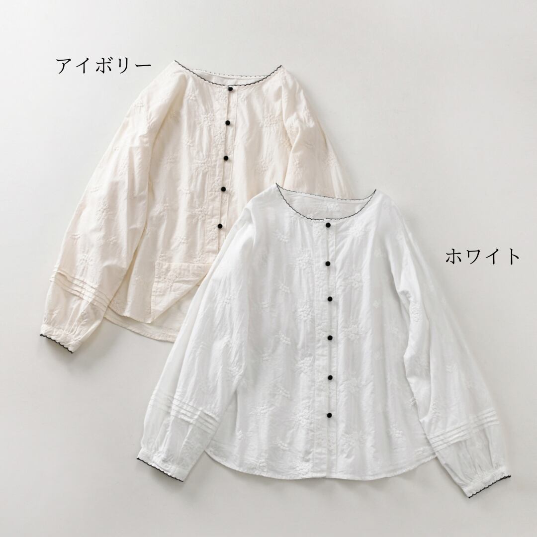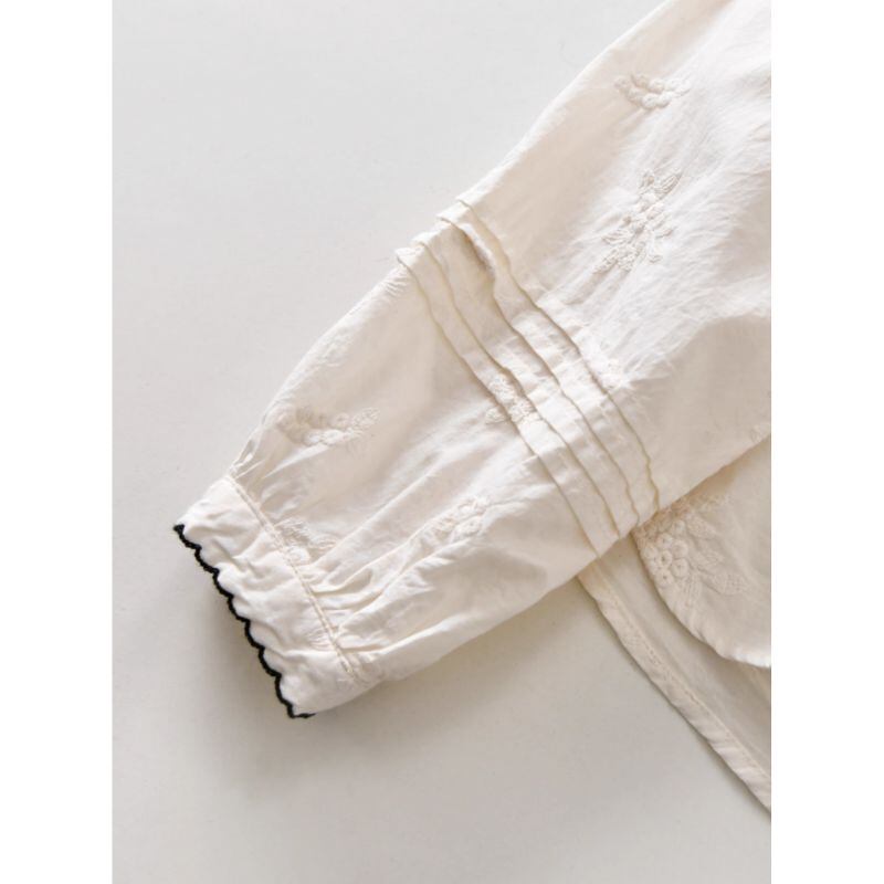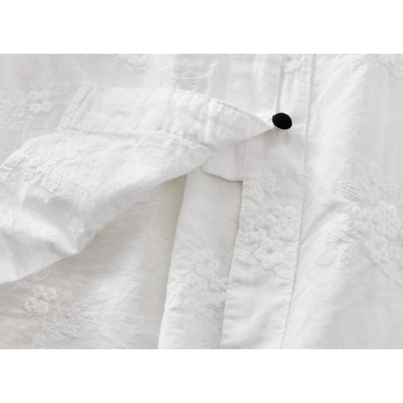 繊細な花柄の刺繍が全体に施され、シンプルながらも華やかな印象を与えます。
