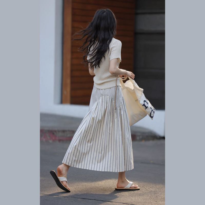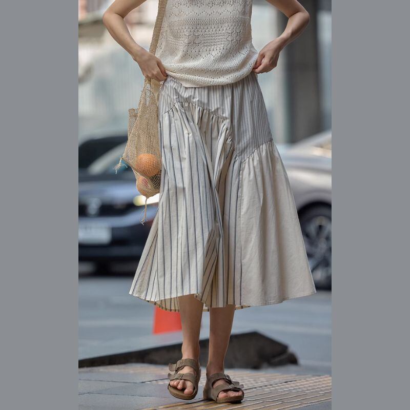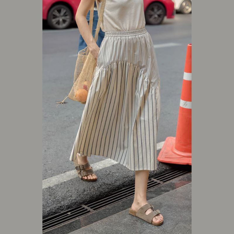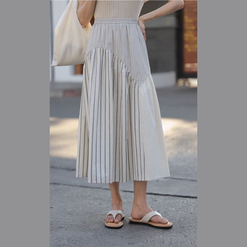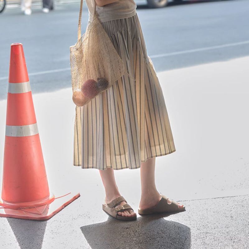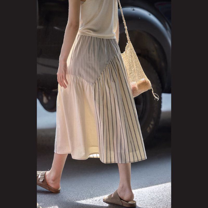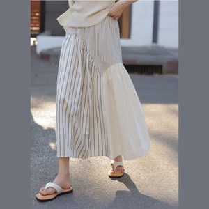 切替デザインストライプミディ丈スカート M0284