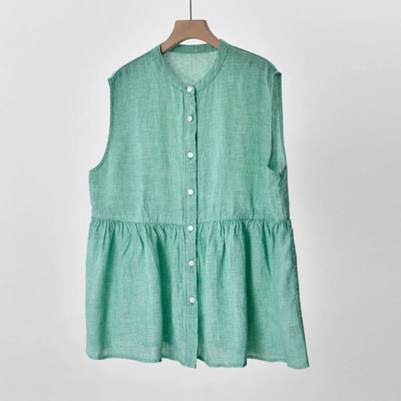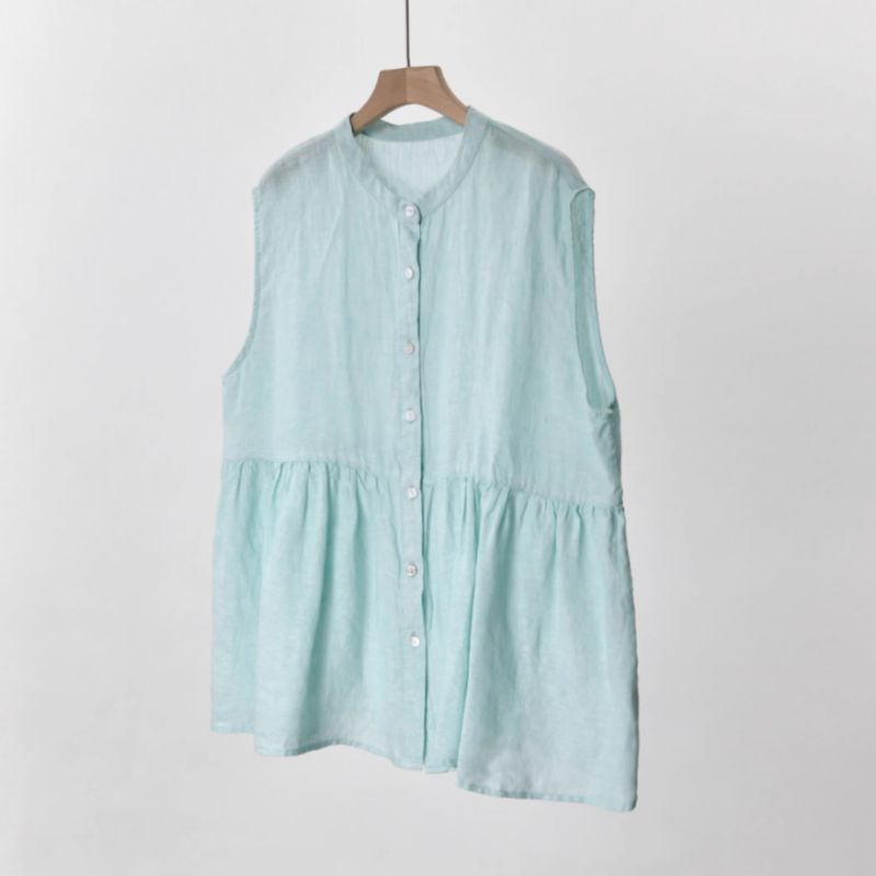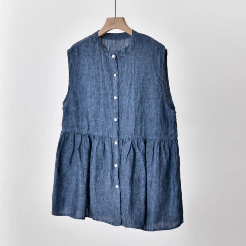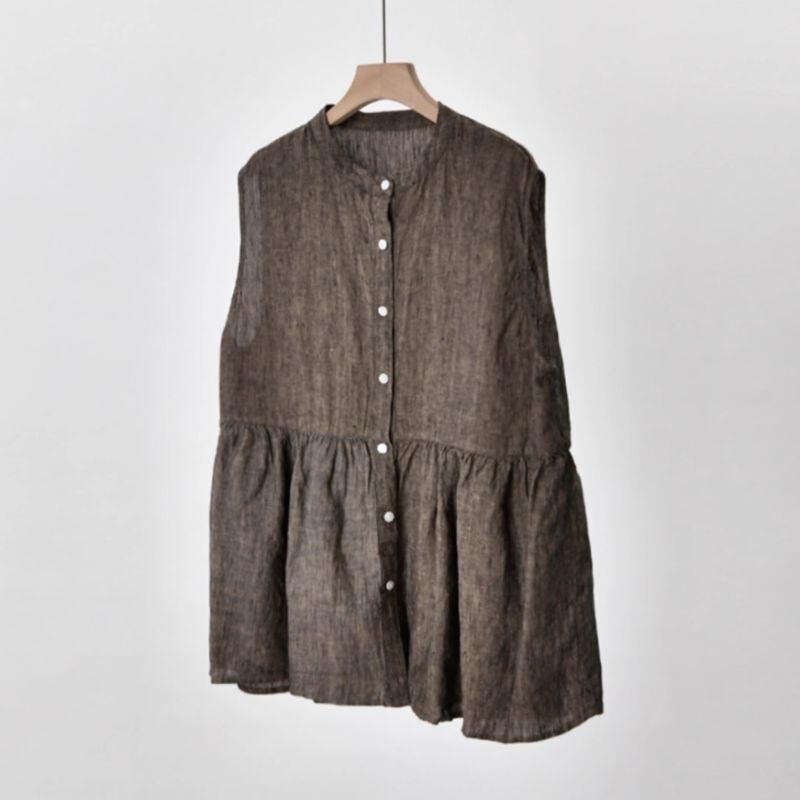 涼しげなノースリーブプルオーバーは、スタンドカラーが上品な印象を与えます。