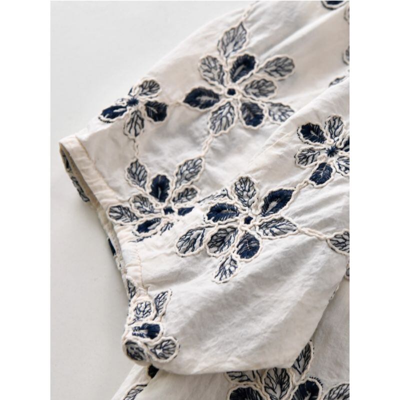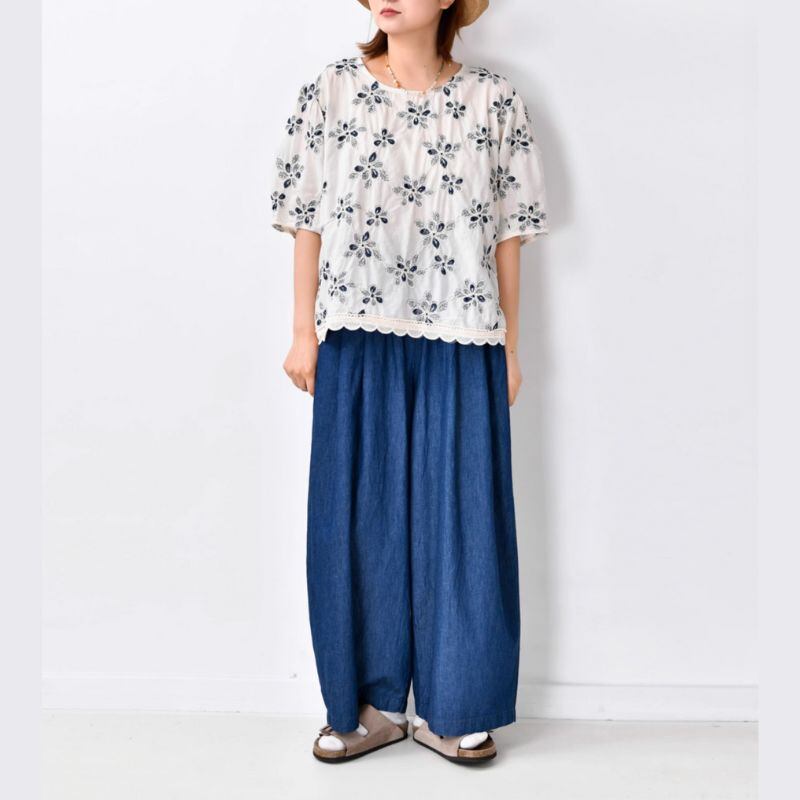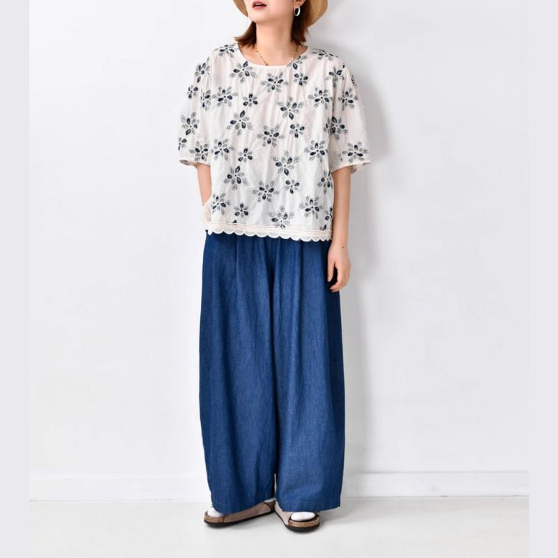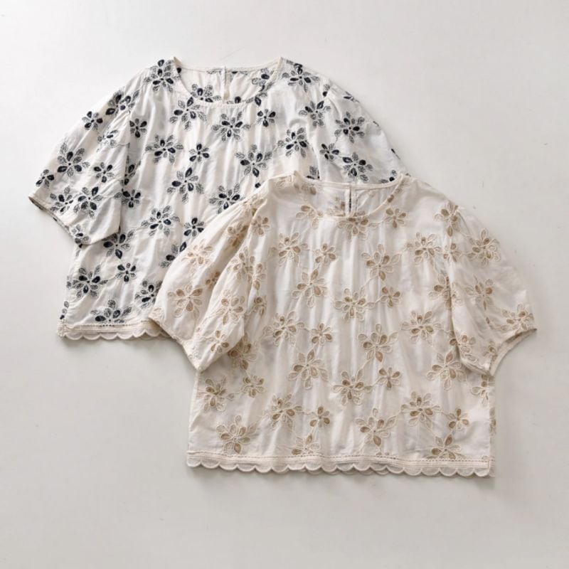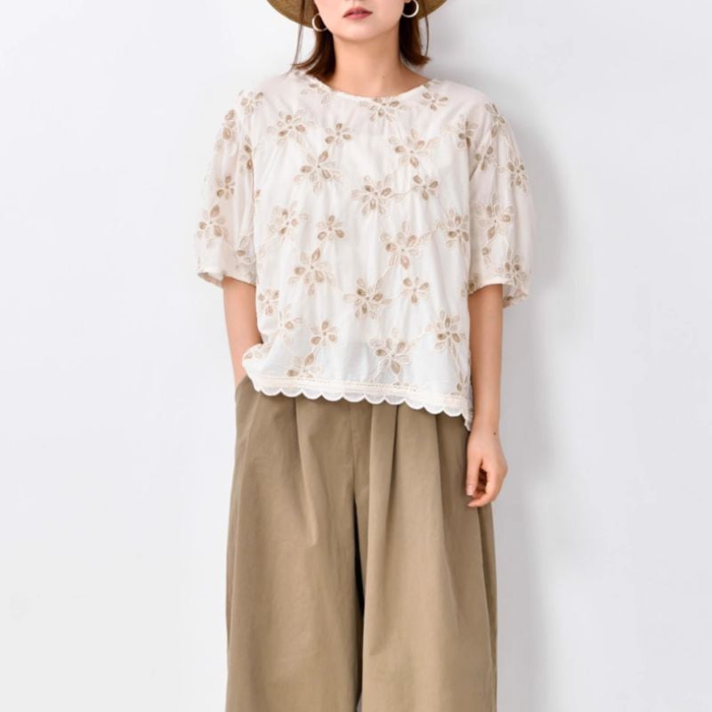 刺繍入りフレアスリーブ半袖ブラウス M0298
