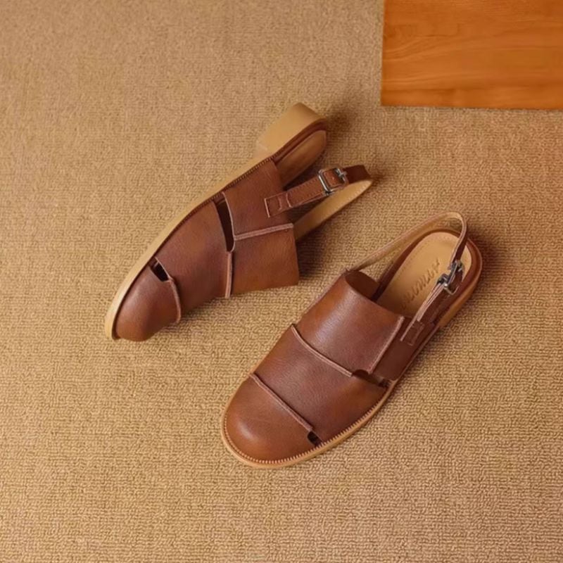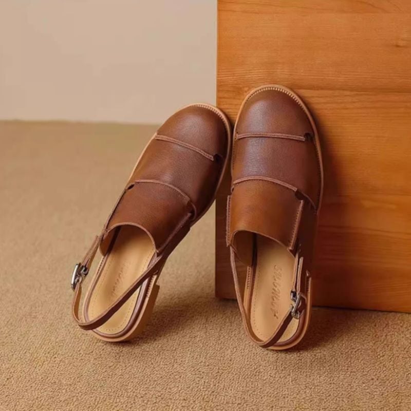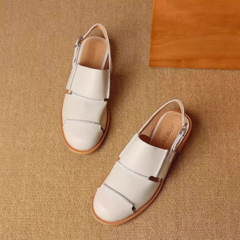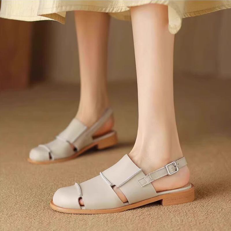 足元をスタイリッシュに演出する、アンクルストラップカットアウトサンダル。洗練されたデザインと快適な履き心地を両立した一足です。
