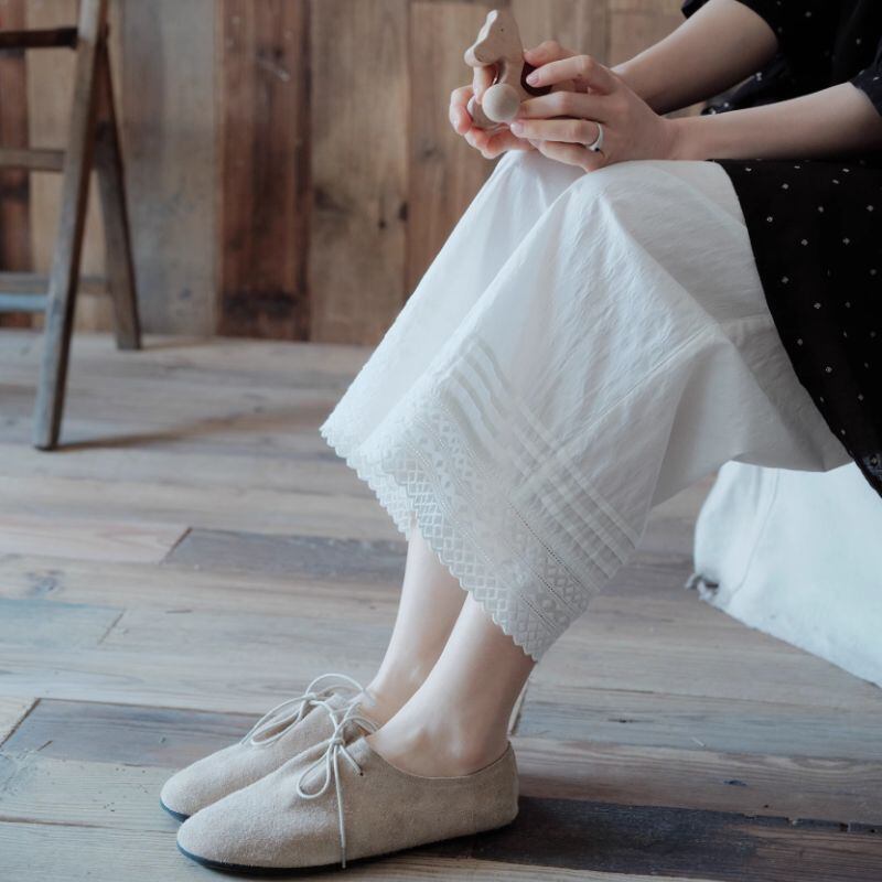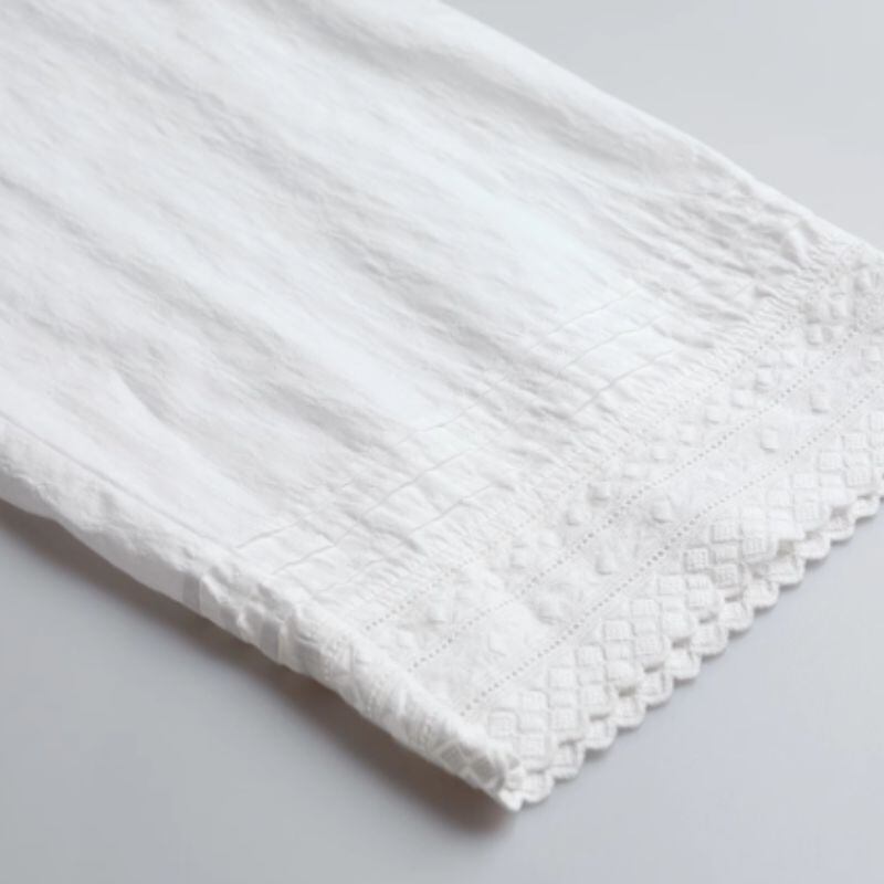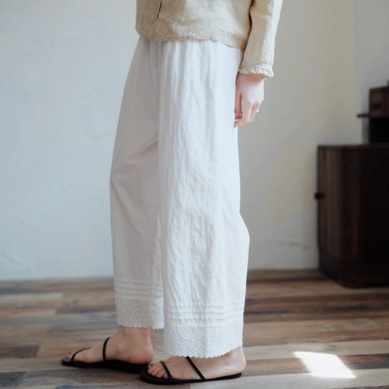 裾の繊細なレースが、女性らしい雰囲気を演出します。