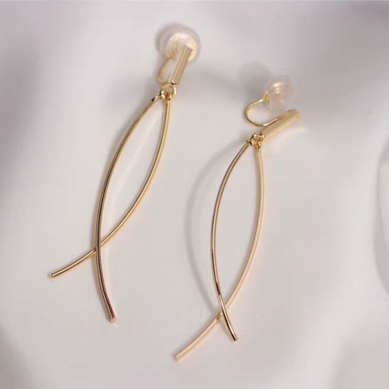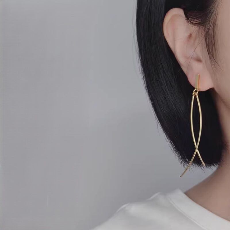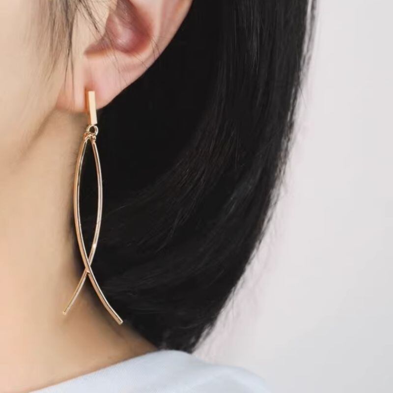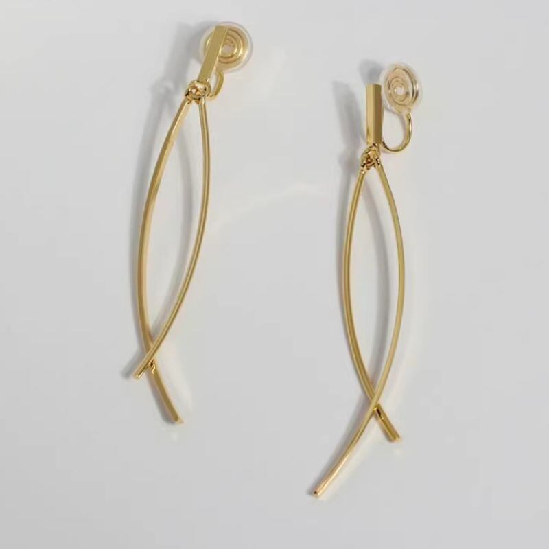 洗練されたデザインが魅力のロングピアス。メタル素材の繊細なラインが、耳元を美しく飾ります。