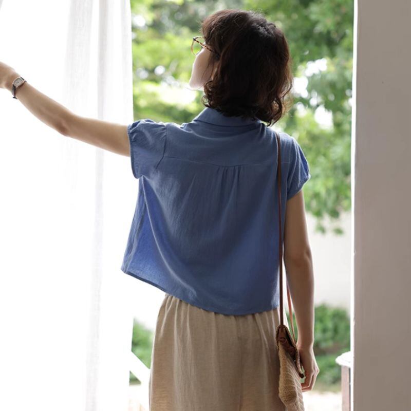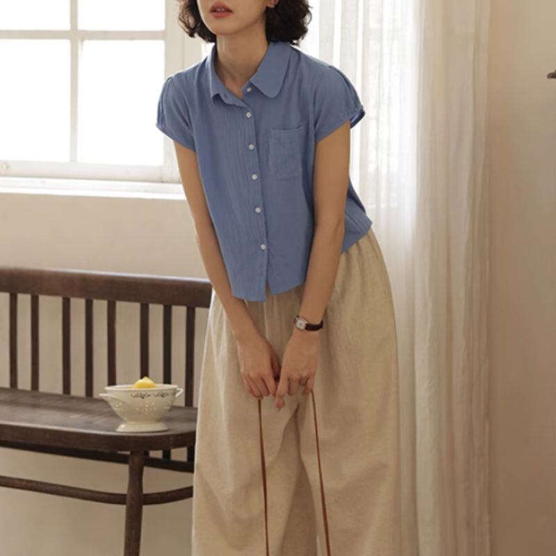すっきりとしたショートスリーブとボックスシルエットが特徴のクロップドシャツ。カジュアルな中にも上品さを感じさせるデザインで、様々なボトムスと合わせやすく、着回し力抜群です。