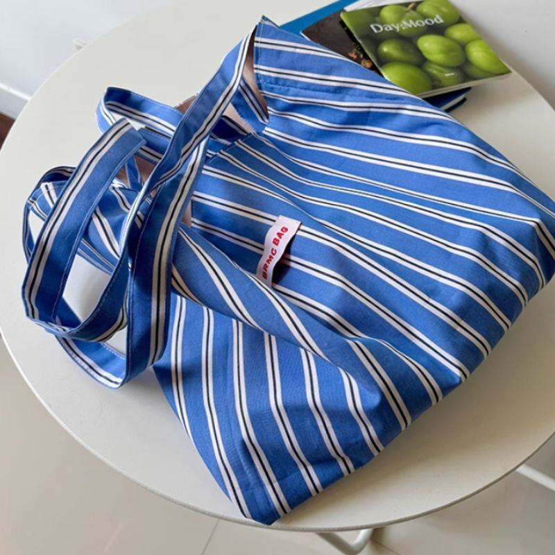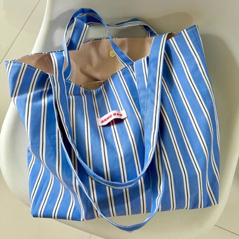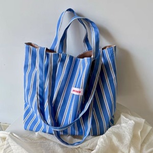 爽やかなストライプ柄が目を引くトートバッグ。シンプルながらも洗練されたデザインは、普段使いからちょっとしたお出かけまで幅広く活躍します。