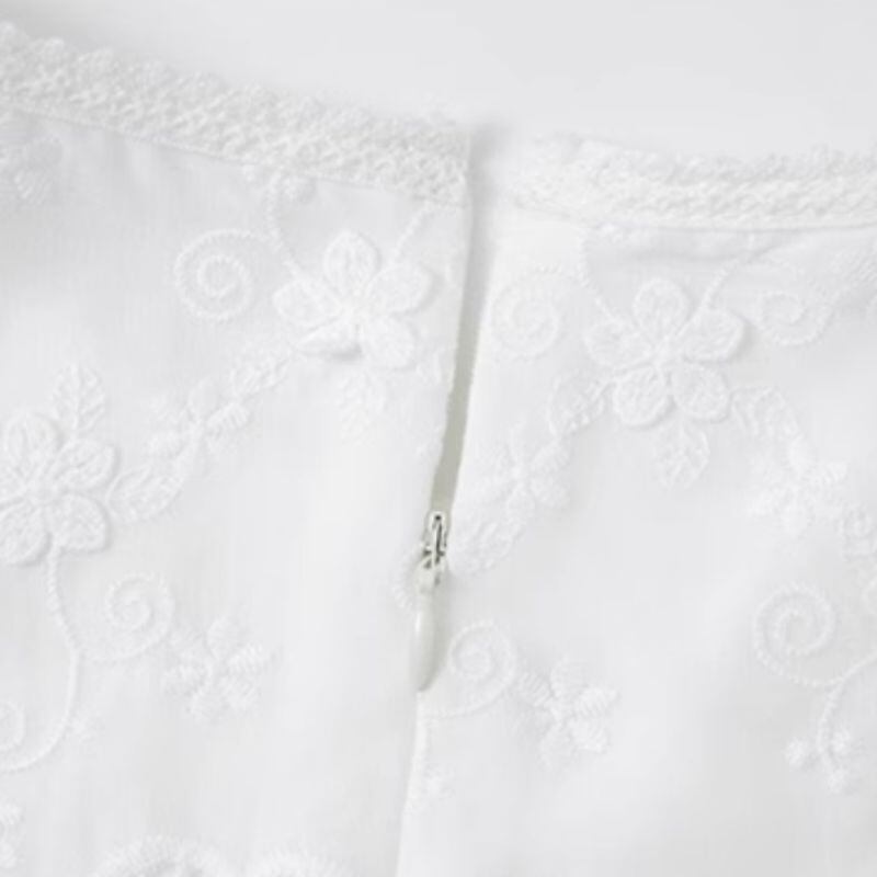 シンプルなデザインながら、程よい透け感と立体的な花柄レースが、着こなしに軽やかさと華やかさをプラスします。