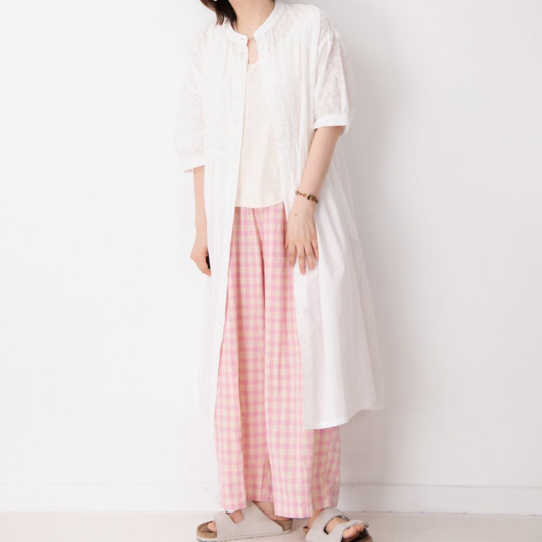 着回し力抜群のギンガムチェックワイドレッグロングパンツ。