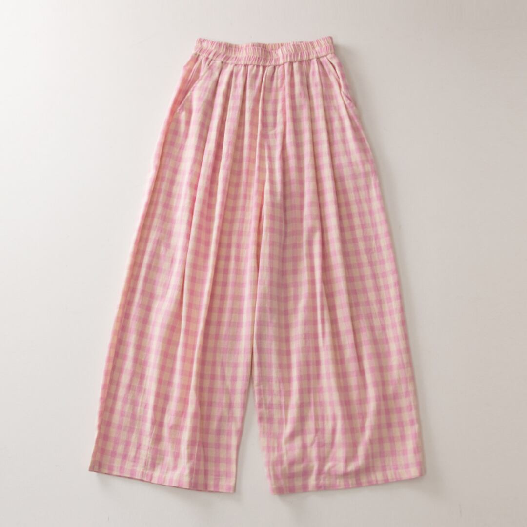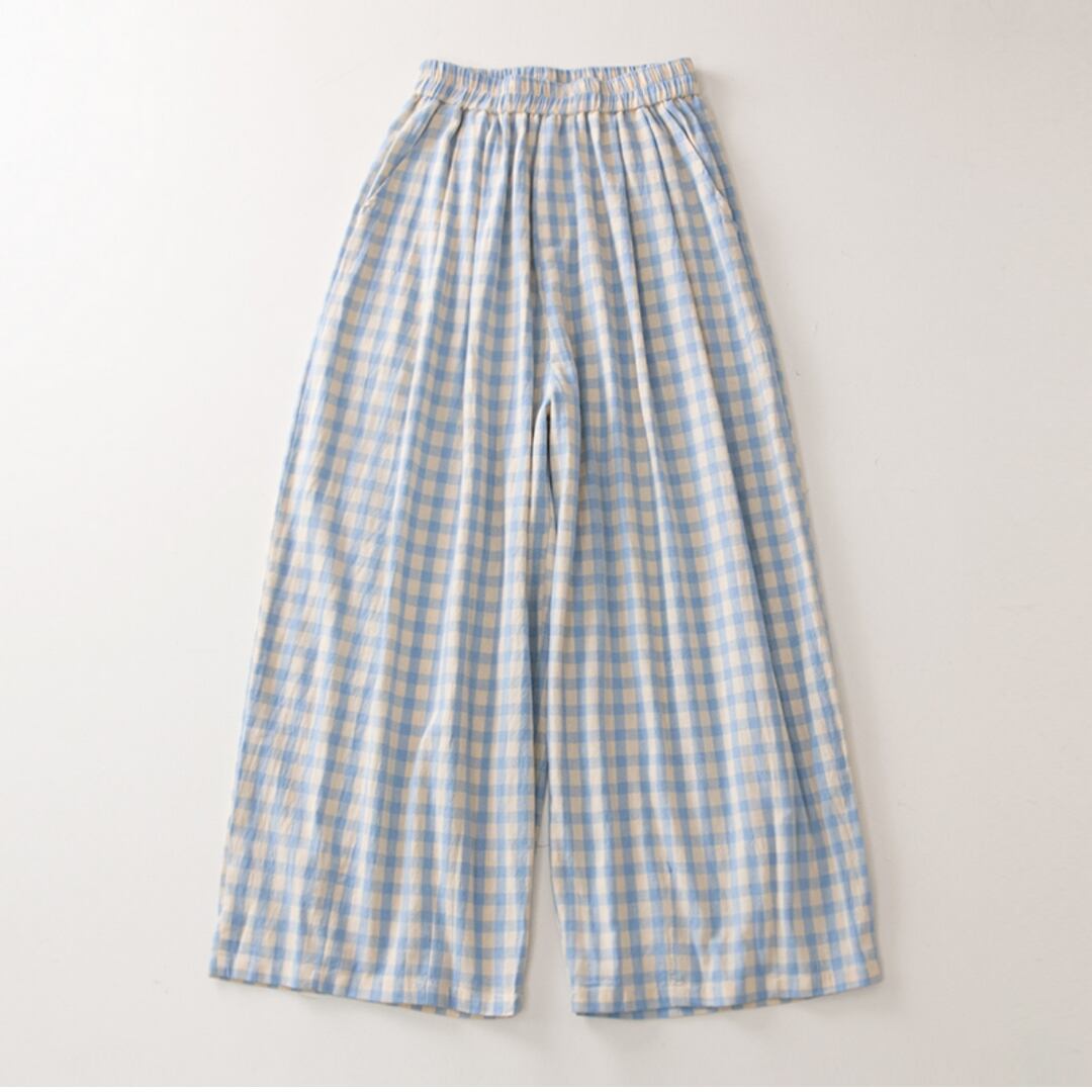 ギンガムチェック ワイドレッグ ロングパンツ M0372