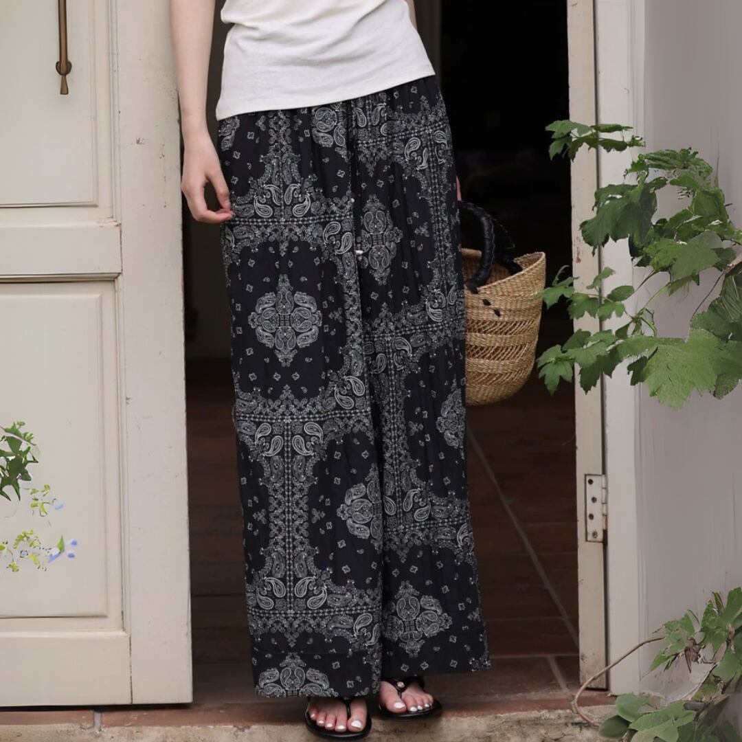 ペイズリー柄ワイドレッグパンツ M0396