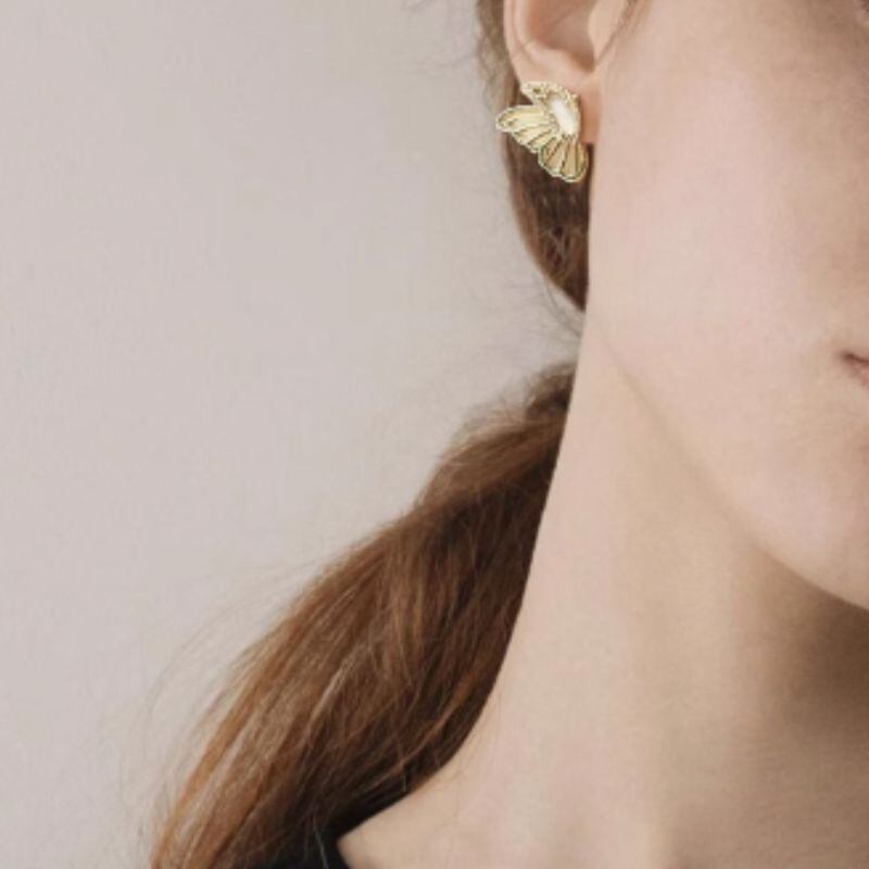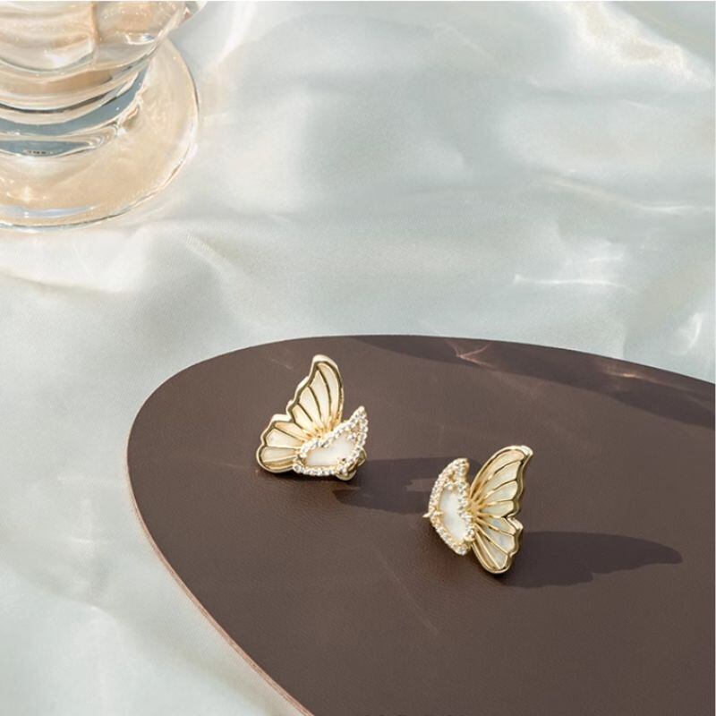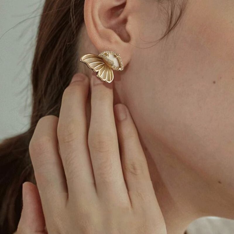 洗練されたデザインの蝶モチーフピアス。繊細なラインと輝くアクセントが、耳元を上品に彩ります。デイリー使いから特別な日まで、幅広いシーンで活躍するアイテムです。