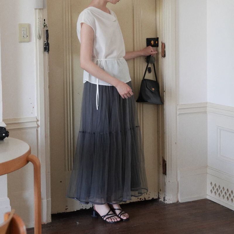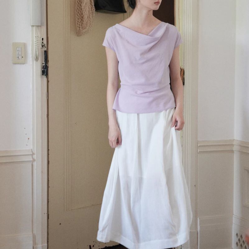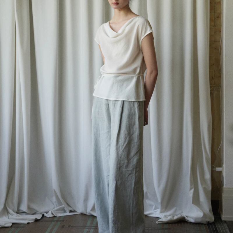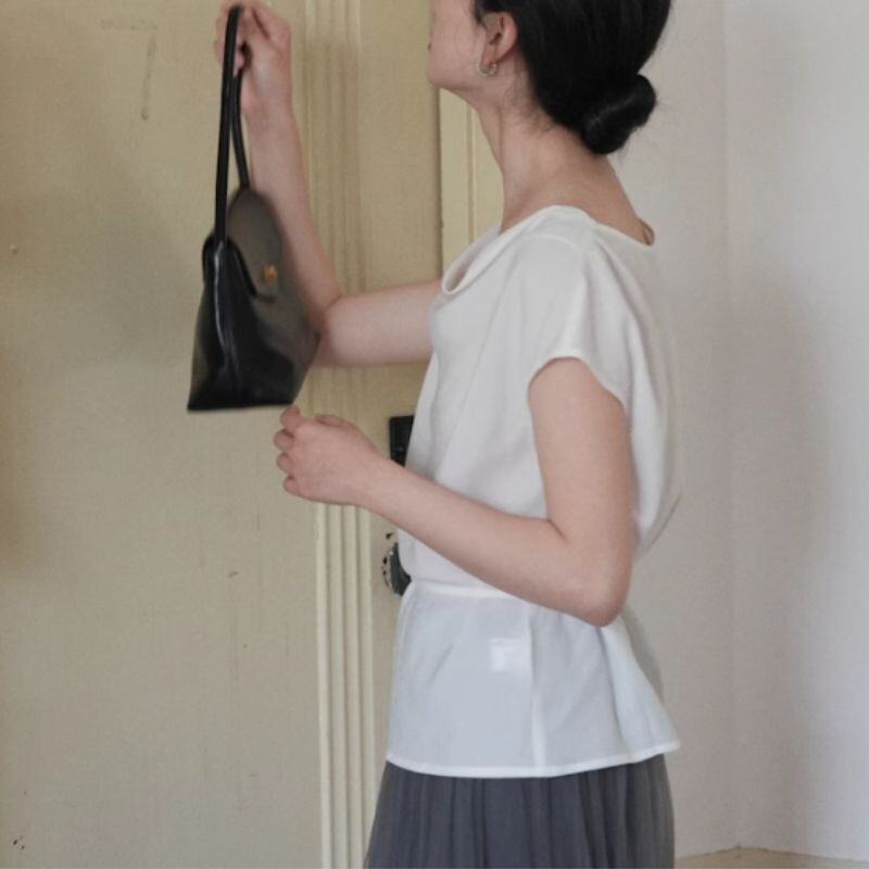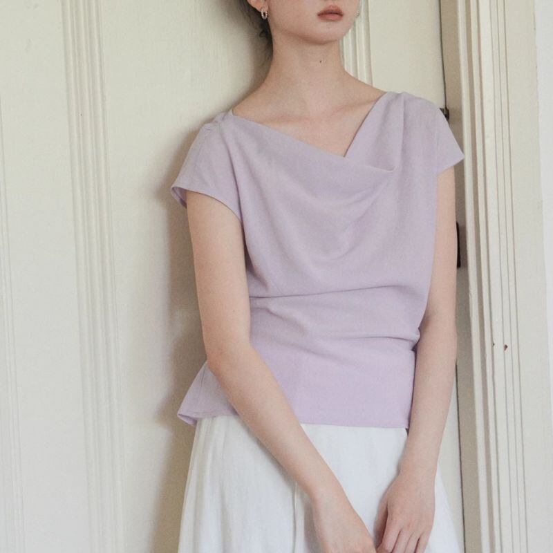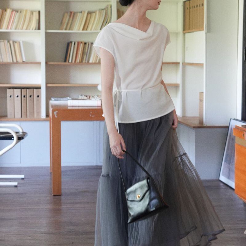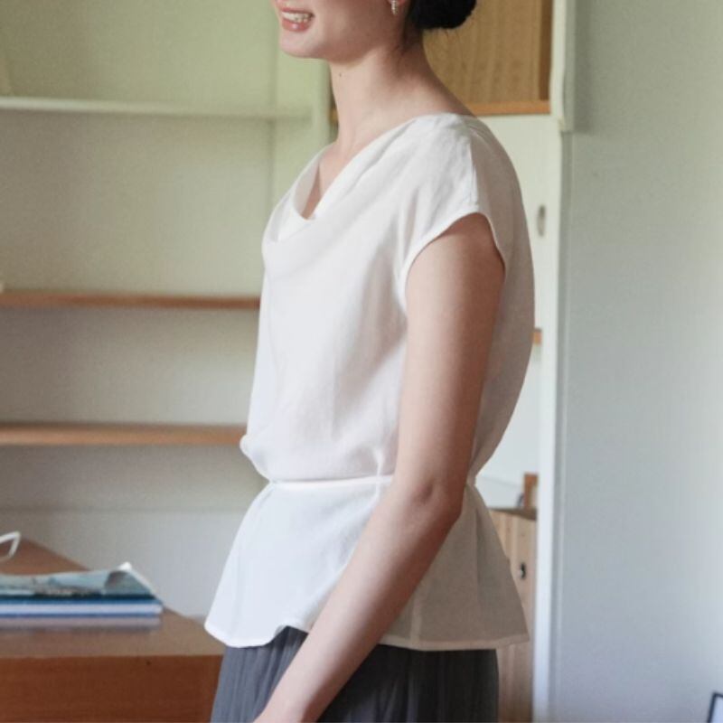 洗練されたドレープネックが、女性らしい優しさと気品を演出するブラウス。フレンチスリーブのデザインが、腕を美しく魅せ、さりげない肌見せで夏らしい軽やかさをプラスします。