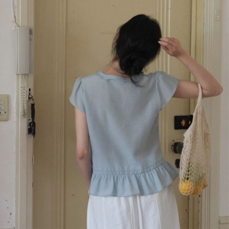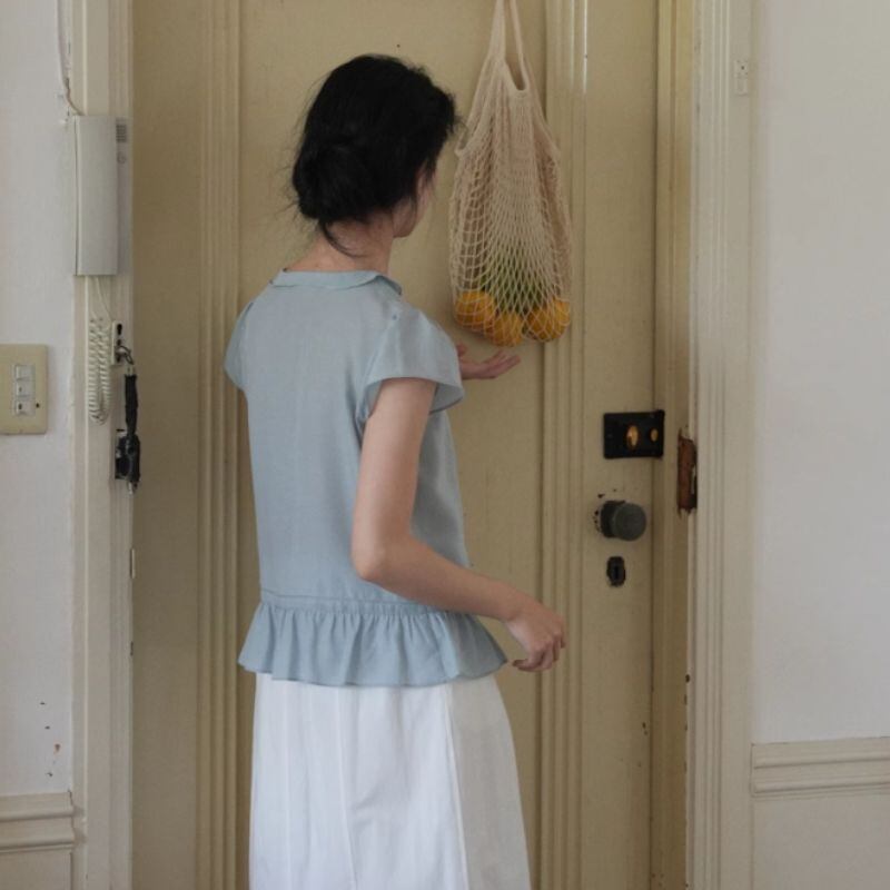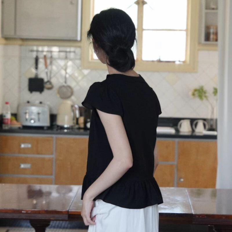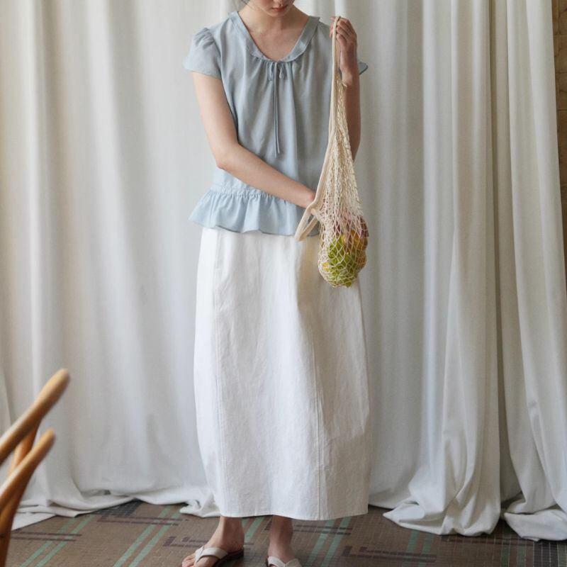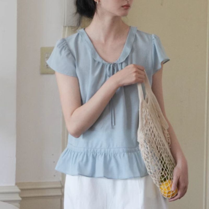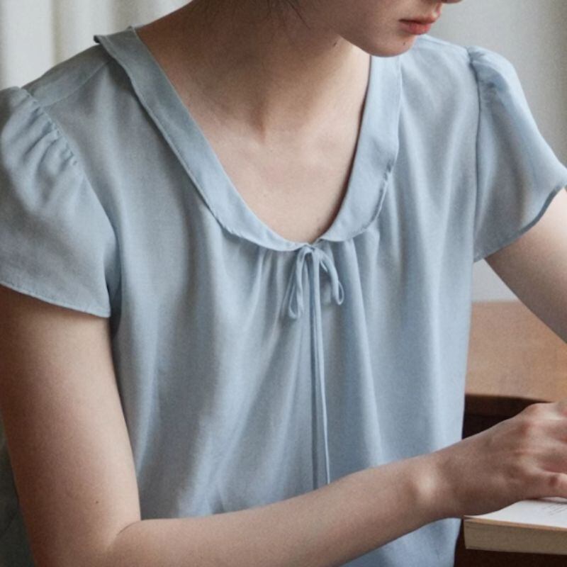フレンチスリーブとボウタイが女性らしい、上品なブラウスです。