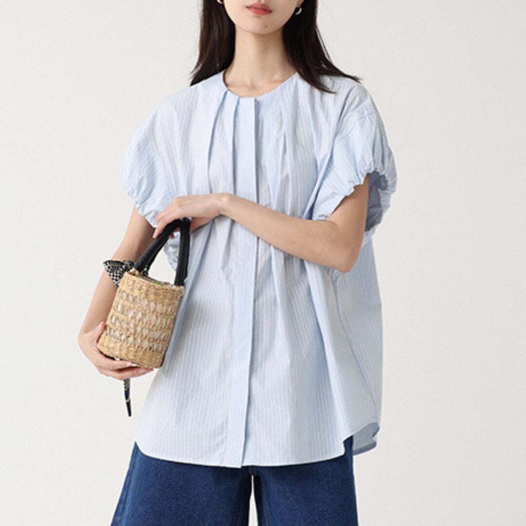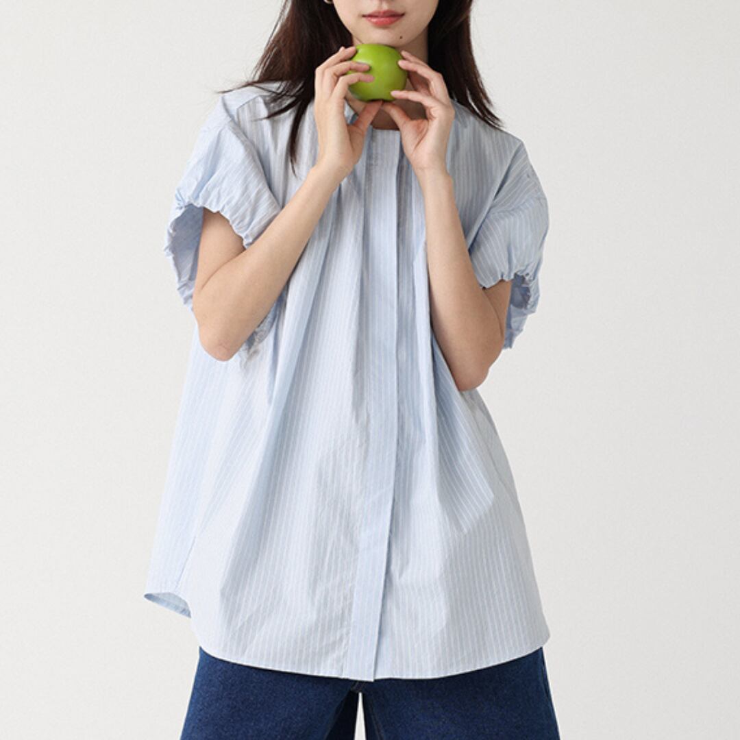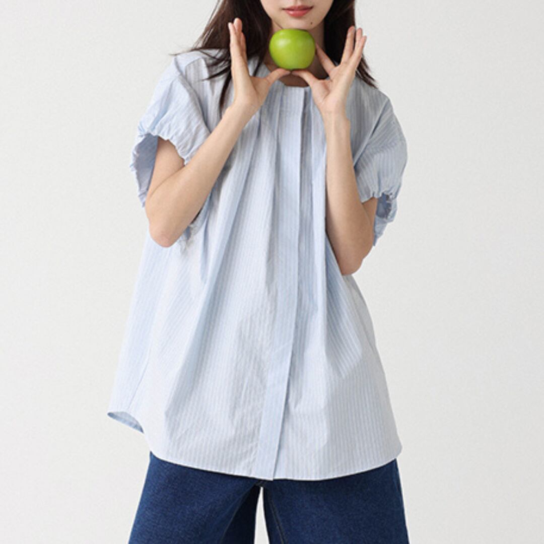 パフスリーブAラインシルエットバンドカラーシャツ M0409