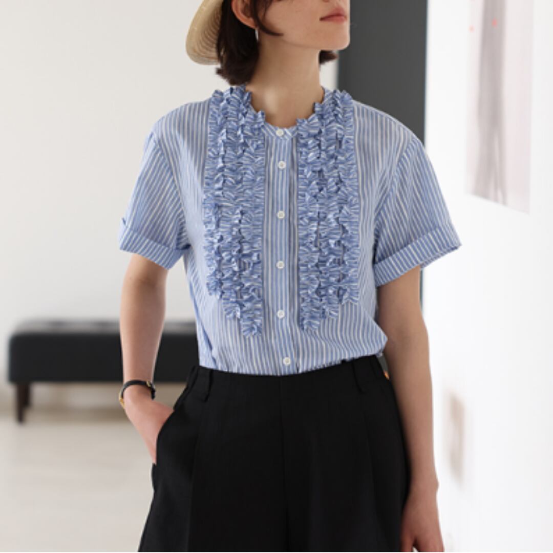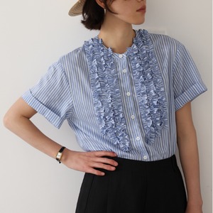 ストライプフリルボタンダウンショートスリーブシャツ M0410