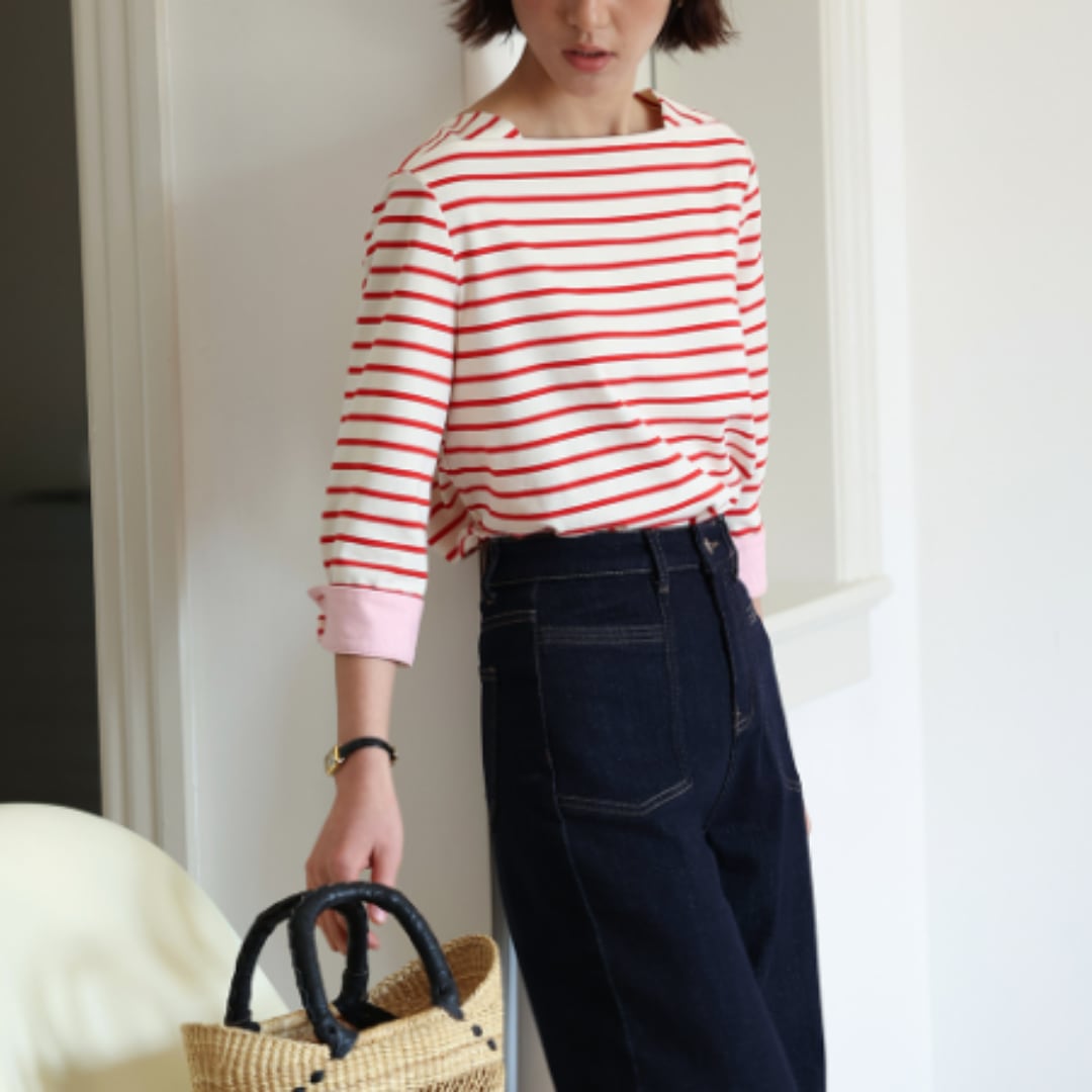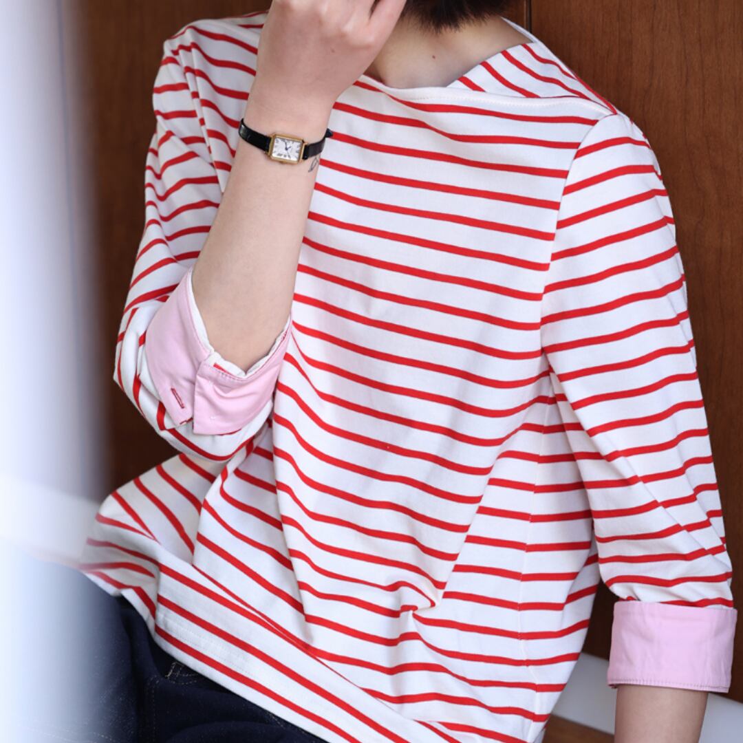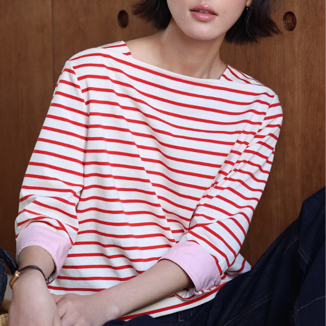 定番のストライプ柄を、洗練されたボートネックのシルエットで仕上げたトップス。袖口のカフスがカジュアルなボーダーにきちんと感をプラスしてくれます。