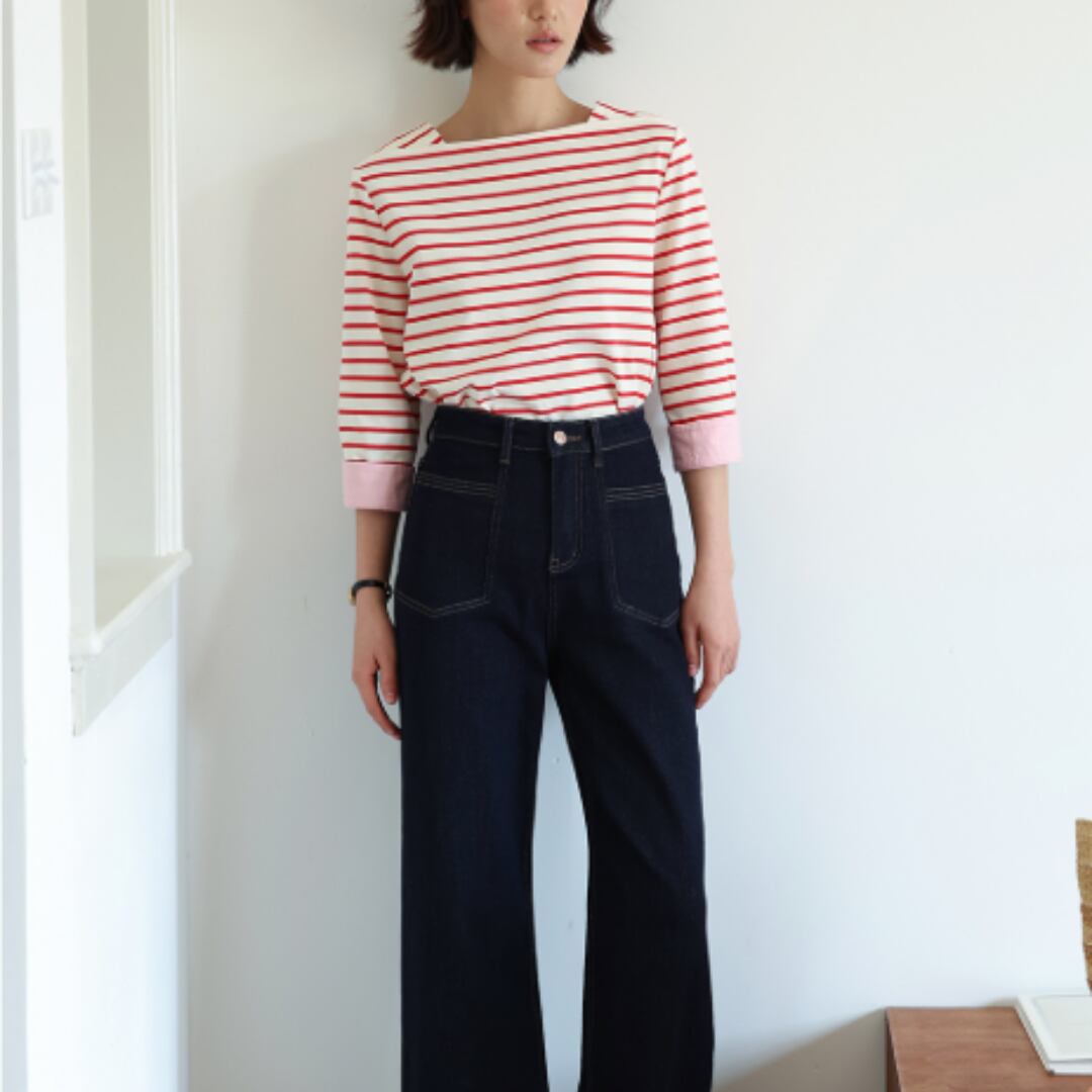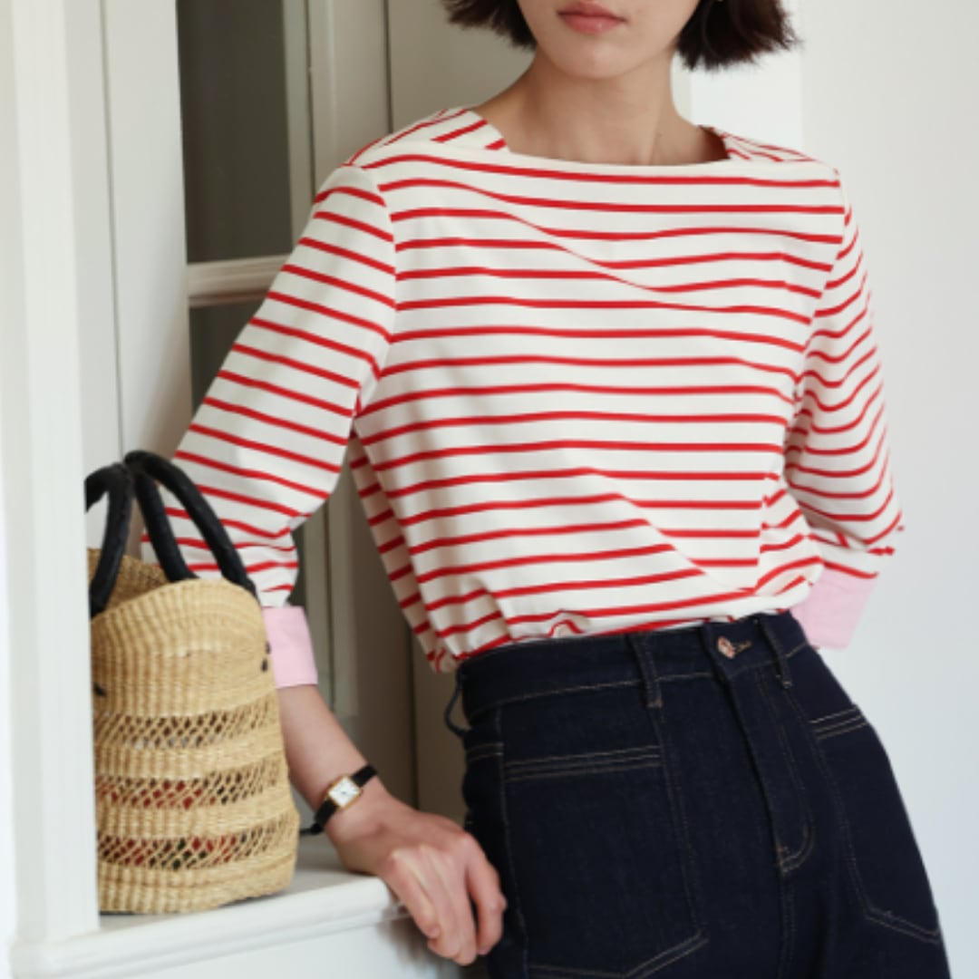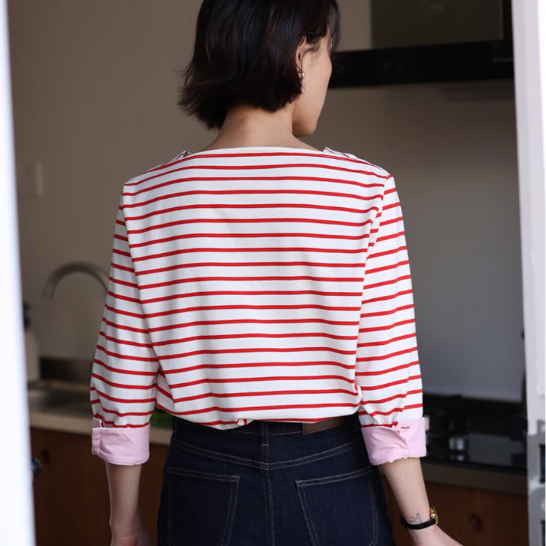 定番のストライプ柄を、洗練されたボートネックのシルエットで仕上げたトップス。袖口のカフスがカジュアルなボーダーにきちんと感をプラスしてくれます。