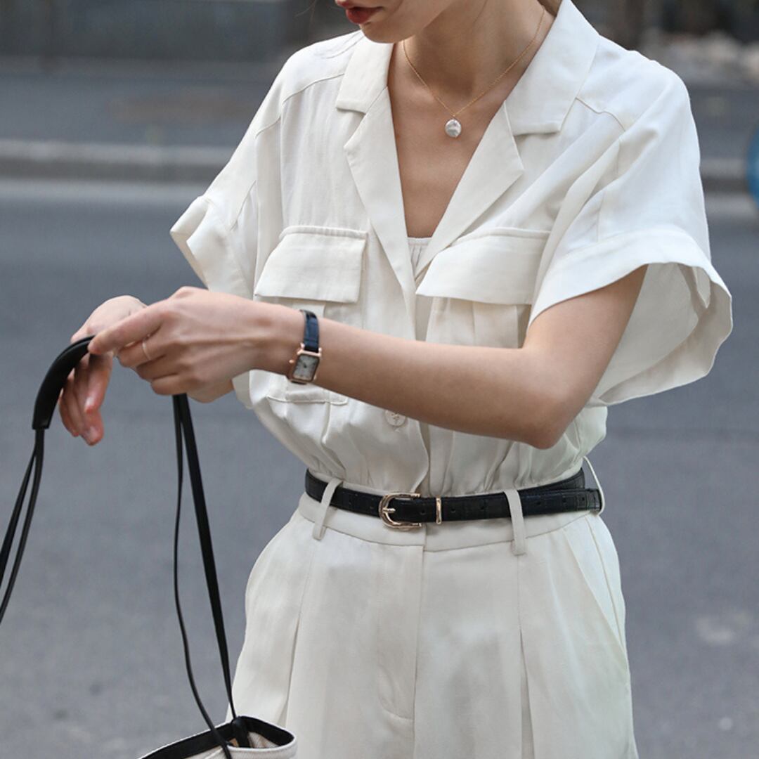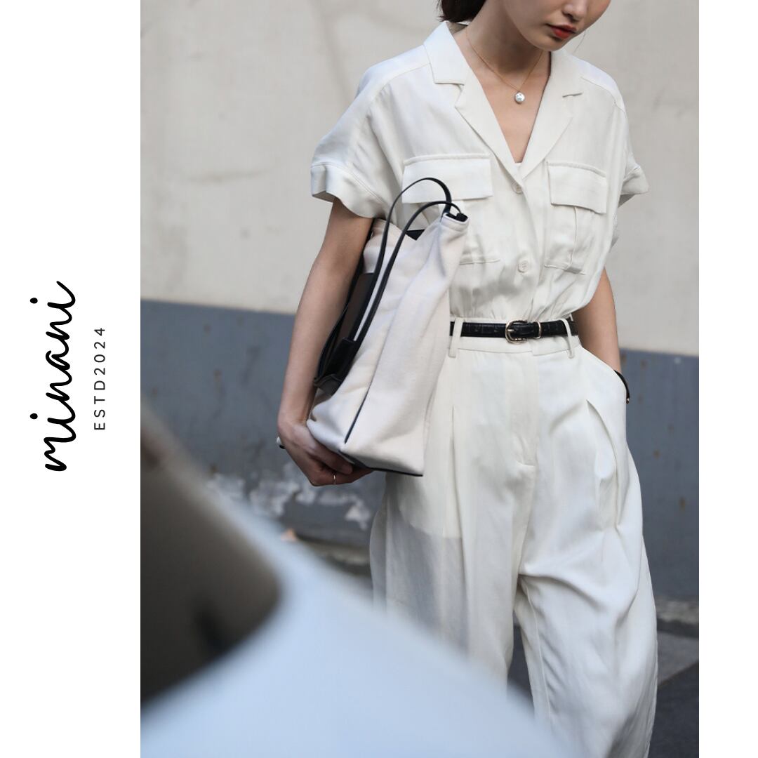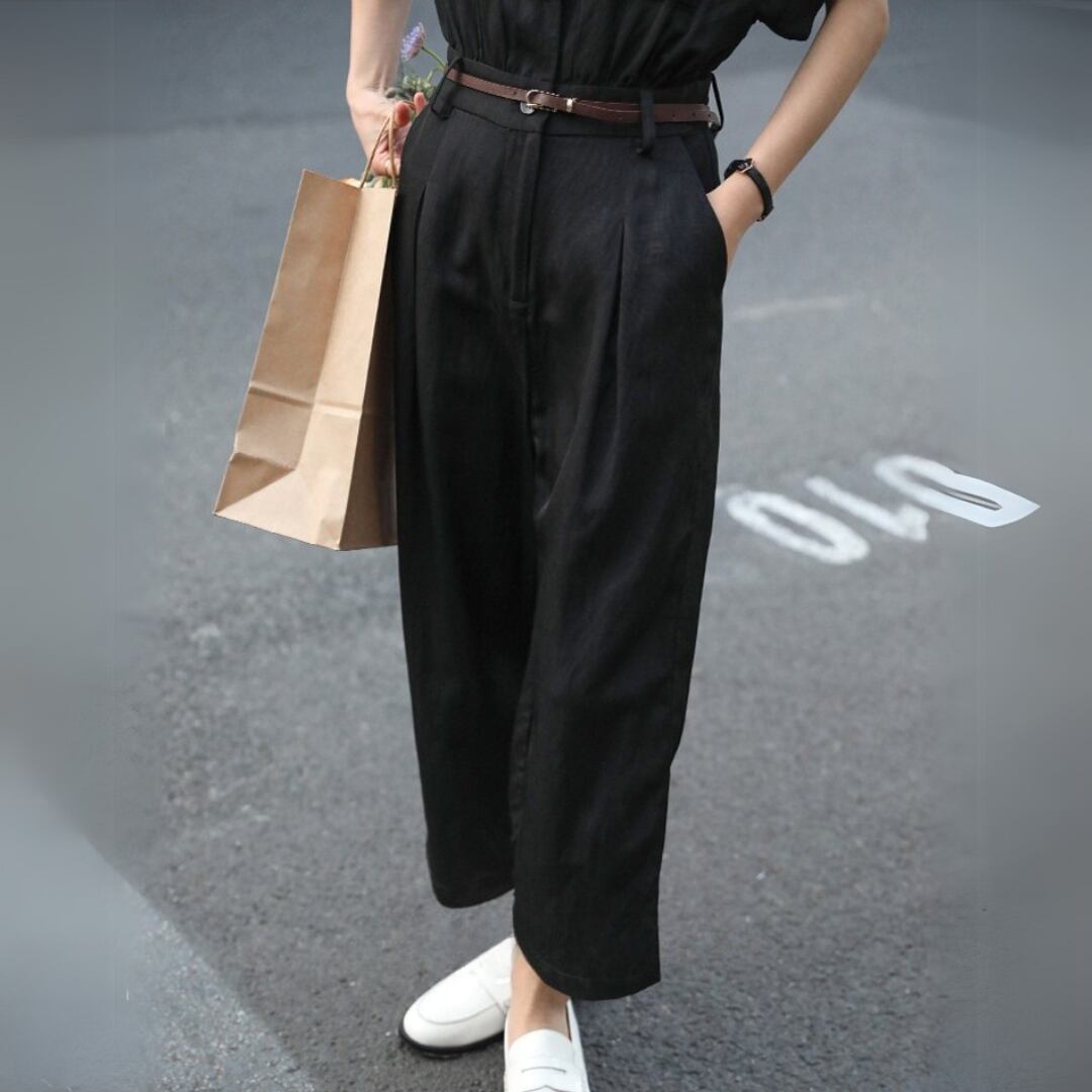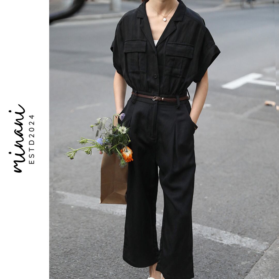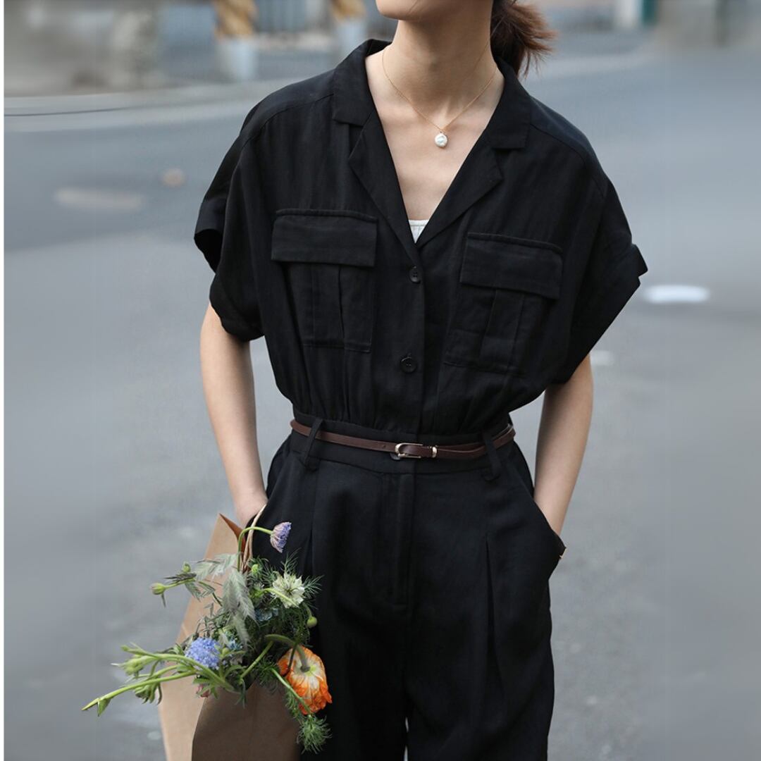 ショートスリーブで涼しく快適、ワイドレッグでリラックス感があり、ベルトでウエストマークするときちんと感も演出できます。 ボタンフロントのデザインが上品さのある大人のジャンプスーツです。