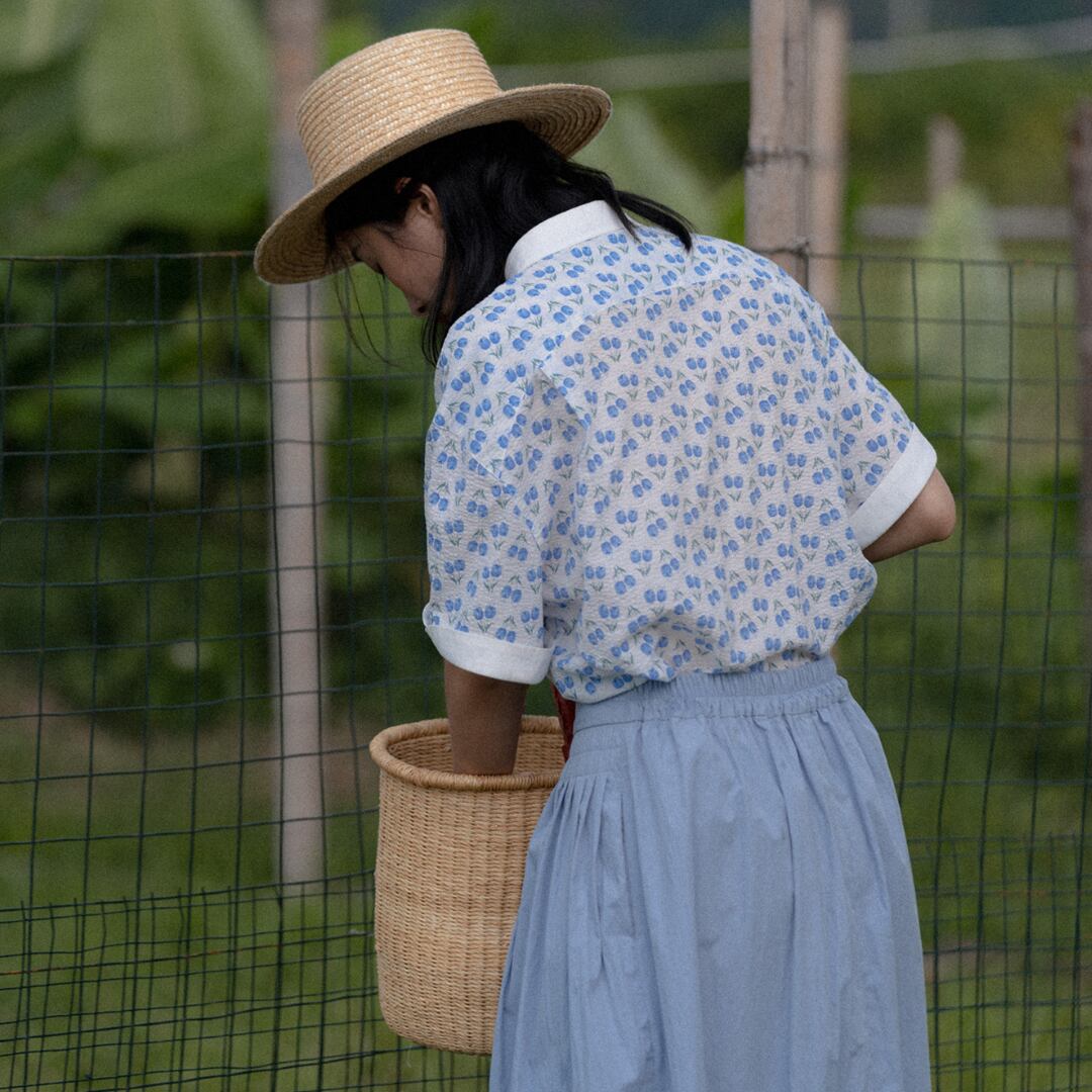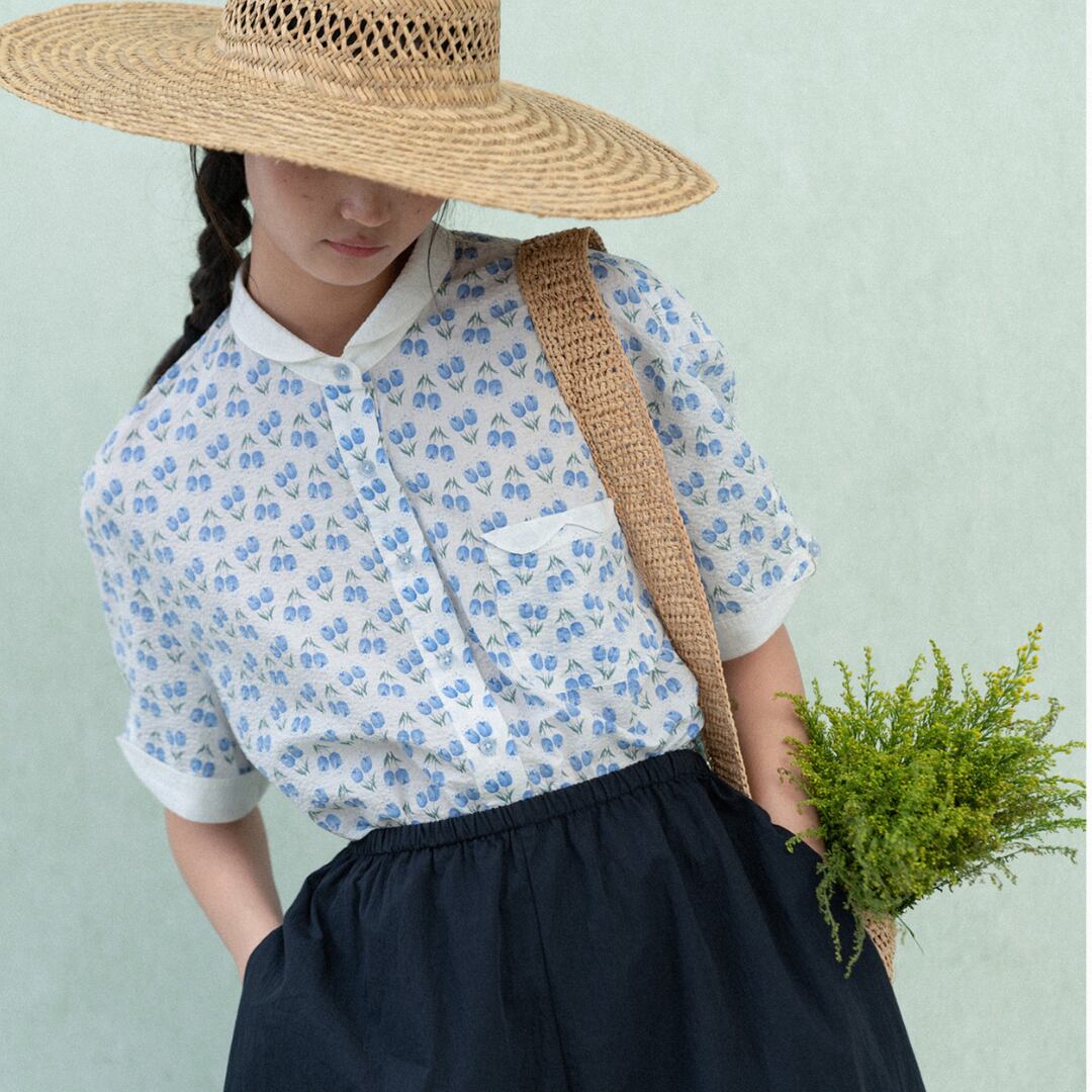 軽やかな着心地と、爽やかな花柄が魅力のシャツ。バンドカラーとボックスシルエットが、カジュアルながらも上品な印象を与えます。