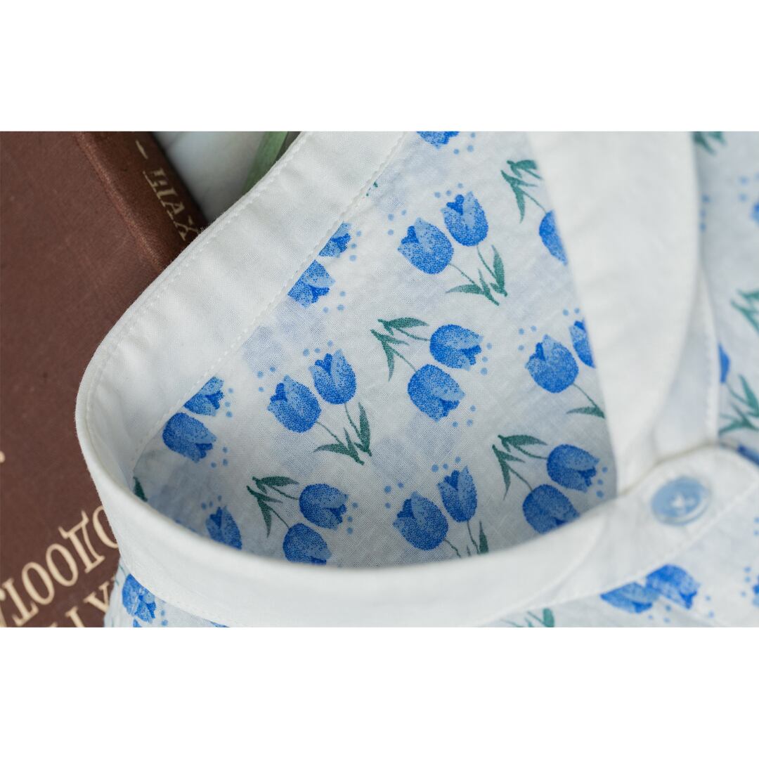 花柄バンドカラー ボックスシルエットシャツ M0432