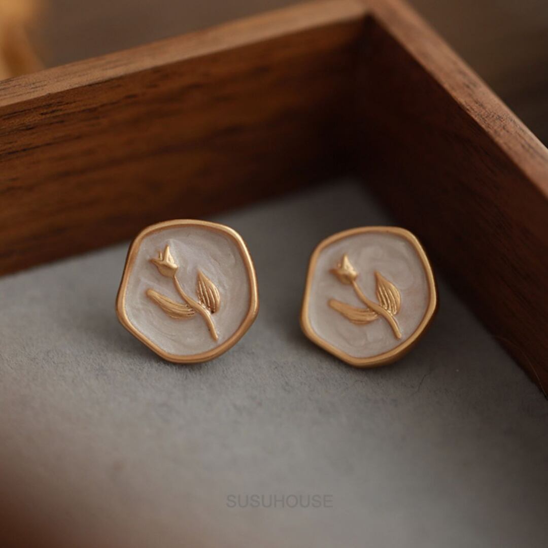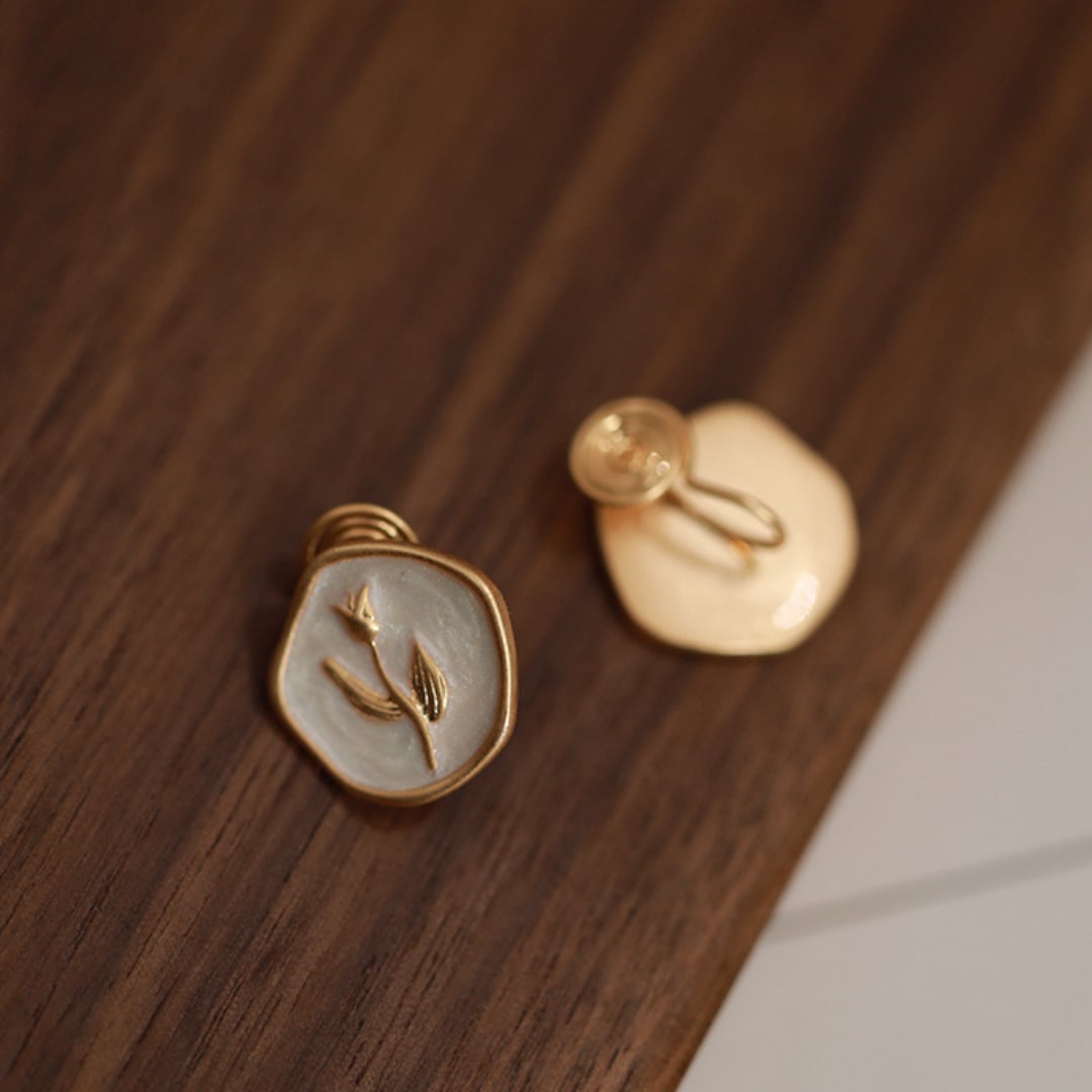 レトロな雰囲気のクリップ式イヤリングです。シリコンカバー付きなので脱落しにくい仕様です。
