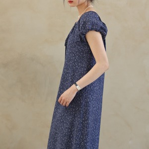 フレンチスリーブVネックミモレ丈Aラインワンピース 0451